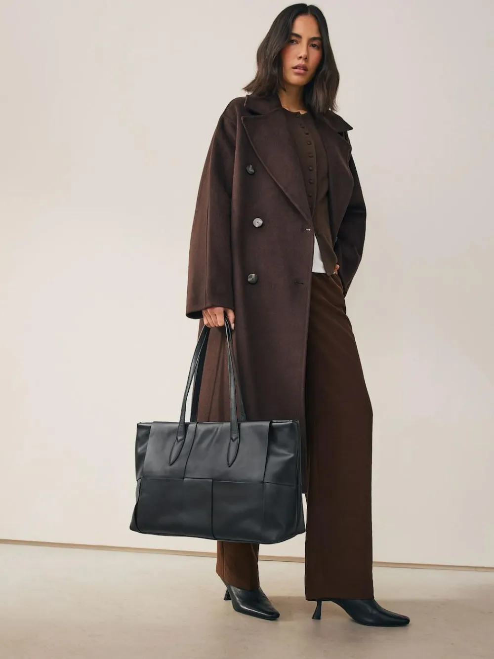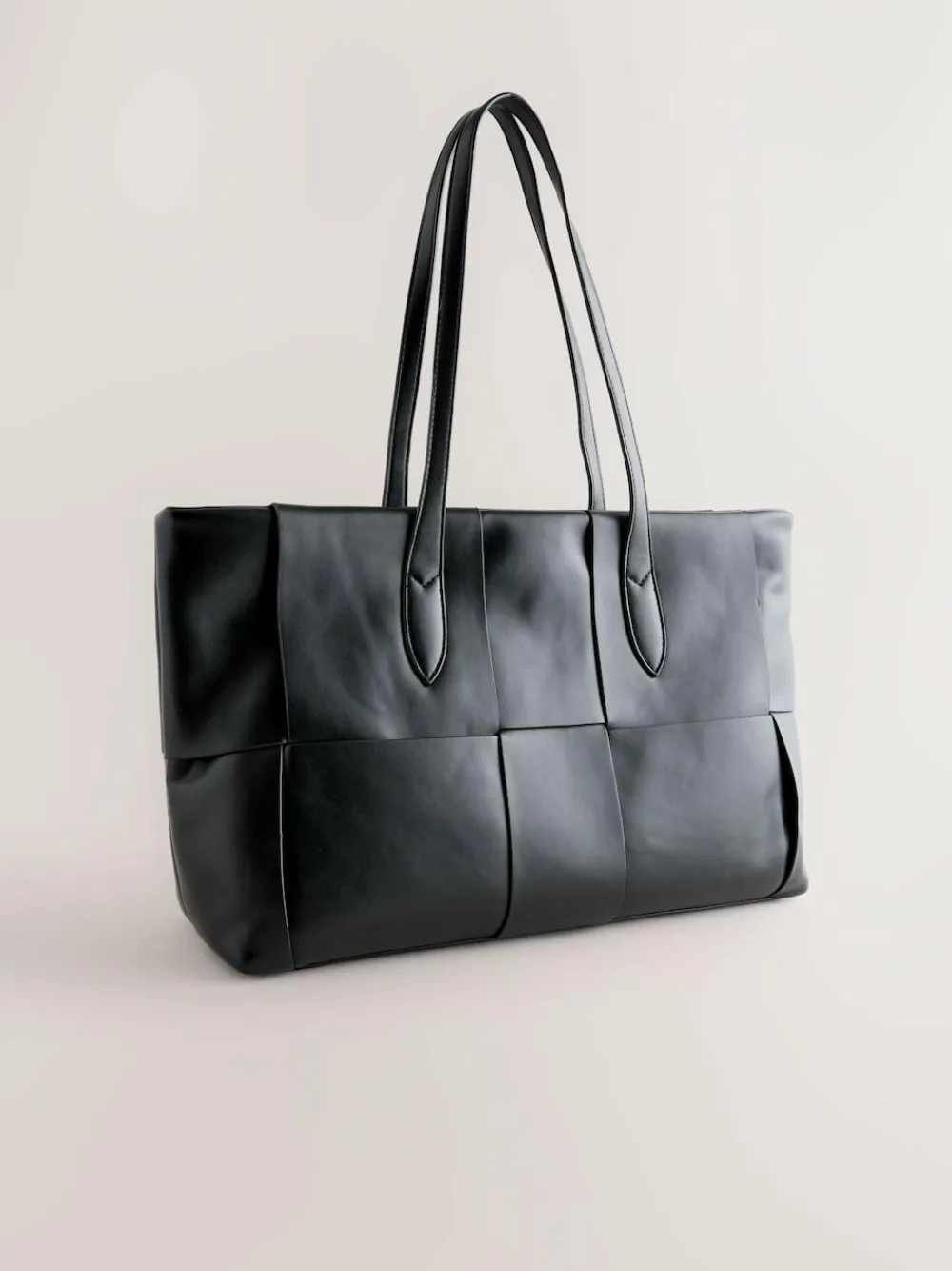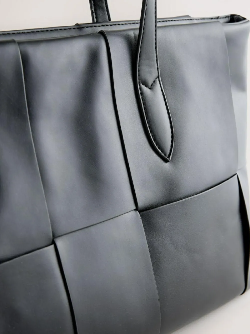 Elevate your everyday carryall with this stylish black weave shoulder bag. Crafted from soft fabric, the tote features a chic woven detail across the body. Its generous size and secure inside zip pocket make it the perfect sophisticated accessory for work or day-to-day use. Weave panel detail Shoulder strap handles Inside zip pocket Height 30cm Width 48cm Depth 5.5cm Outer 100% PU. Lining 100% Recycled polyester.