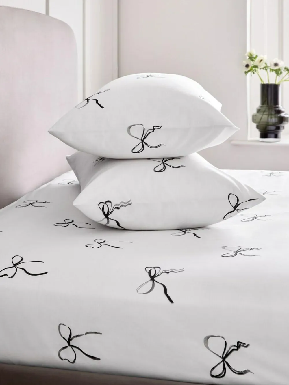 Next Black/White Bow Fitted Sheet and Pillowcase Set^ Bedsheets & Pillow Cases