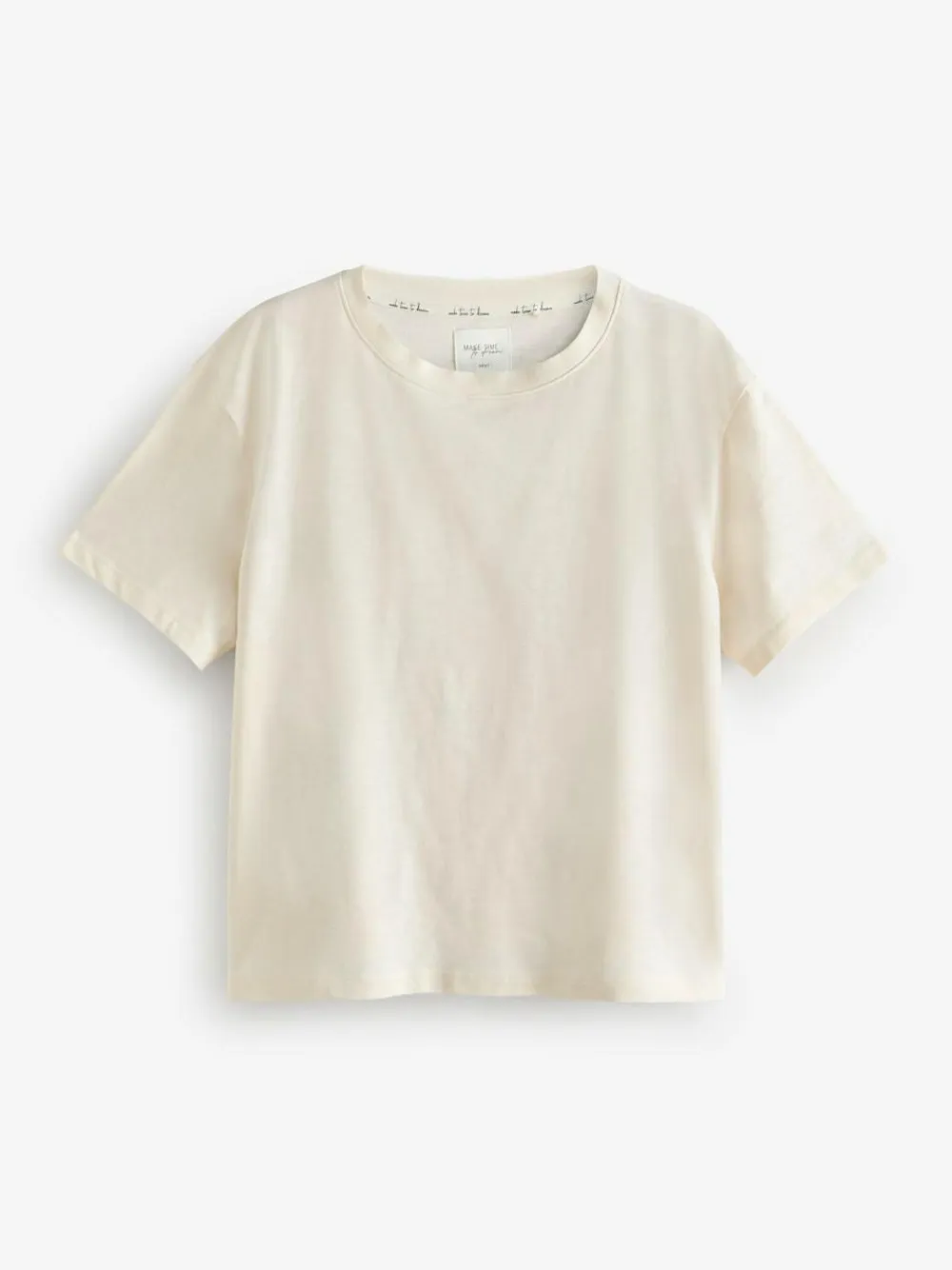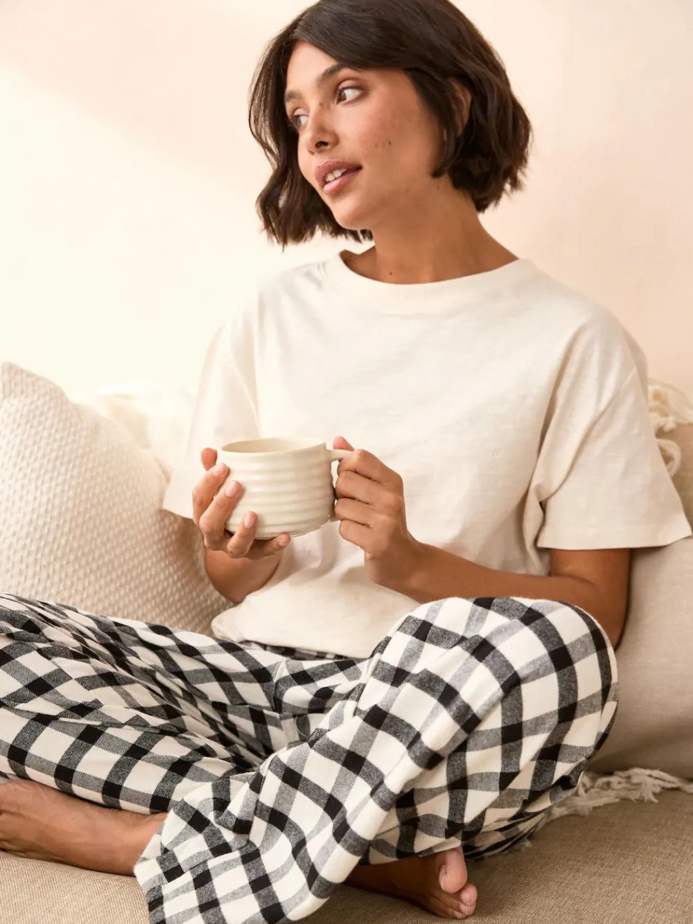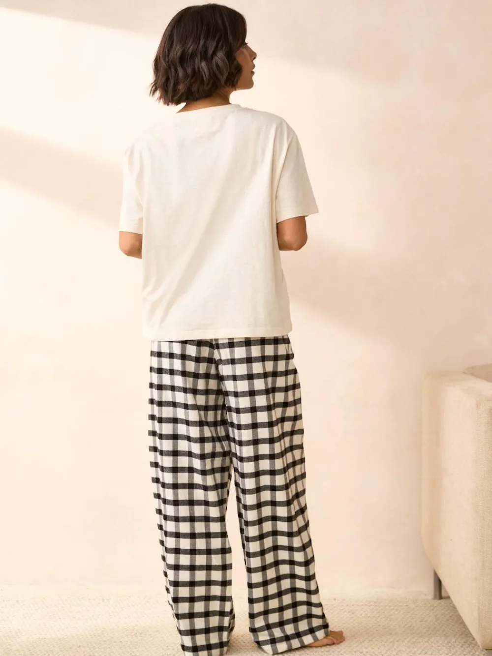 Stock-up on bedtime essentials, with this 2-pack of pyjamas, featuring short sleeve relaxed fit cotton t-shirts with crewneck collars, alongside full-length bottoms with an elasticated waistband and side pockets. 2-pack 100% cotton Relaxed fit Short sleeve tops Full-length bottoms Pyjama Top ecru and Pyjama Top black Main 100% Cotton. Rib 95% Cotton, 5% Elastane. Pyjama Bottom and Pyjama Bottom 98% Cotton, 1% Metallised fibre, 1% Polyester. Items with the curve logo are available in sizes 18 and above., Warning: Keep away from fire and flames., Our tall collection is designed to fit women 5’10” and above. This has been proportionally increased through the body, leg and sleeve to achieve the perfect fit. Available in sizes 8-20.