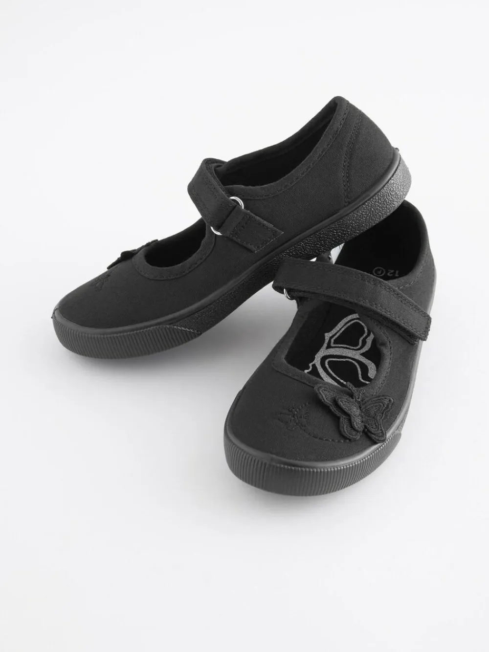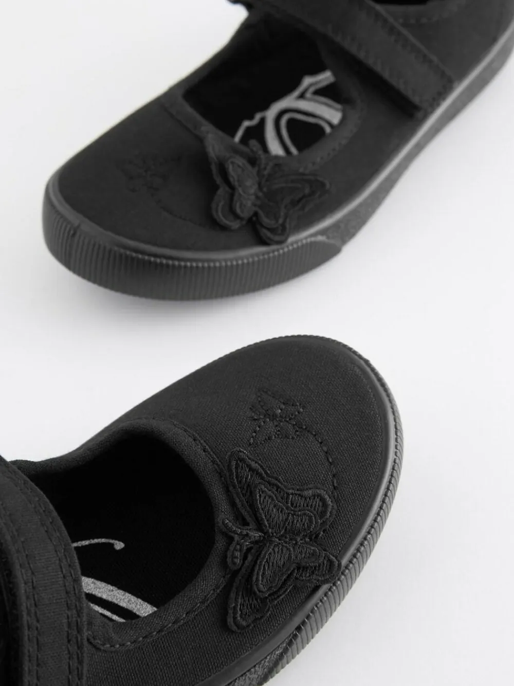Next Black Wide Fit (G) Butterfly Embroidered School Plimsoll Shoes^ Shoes