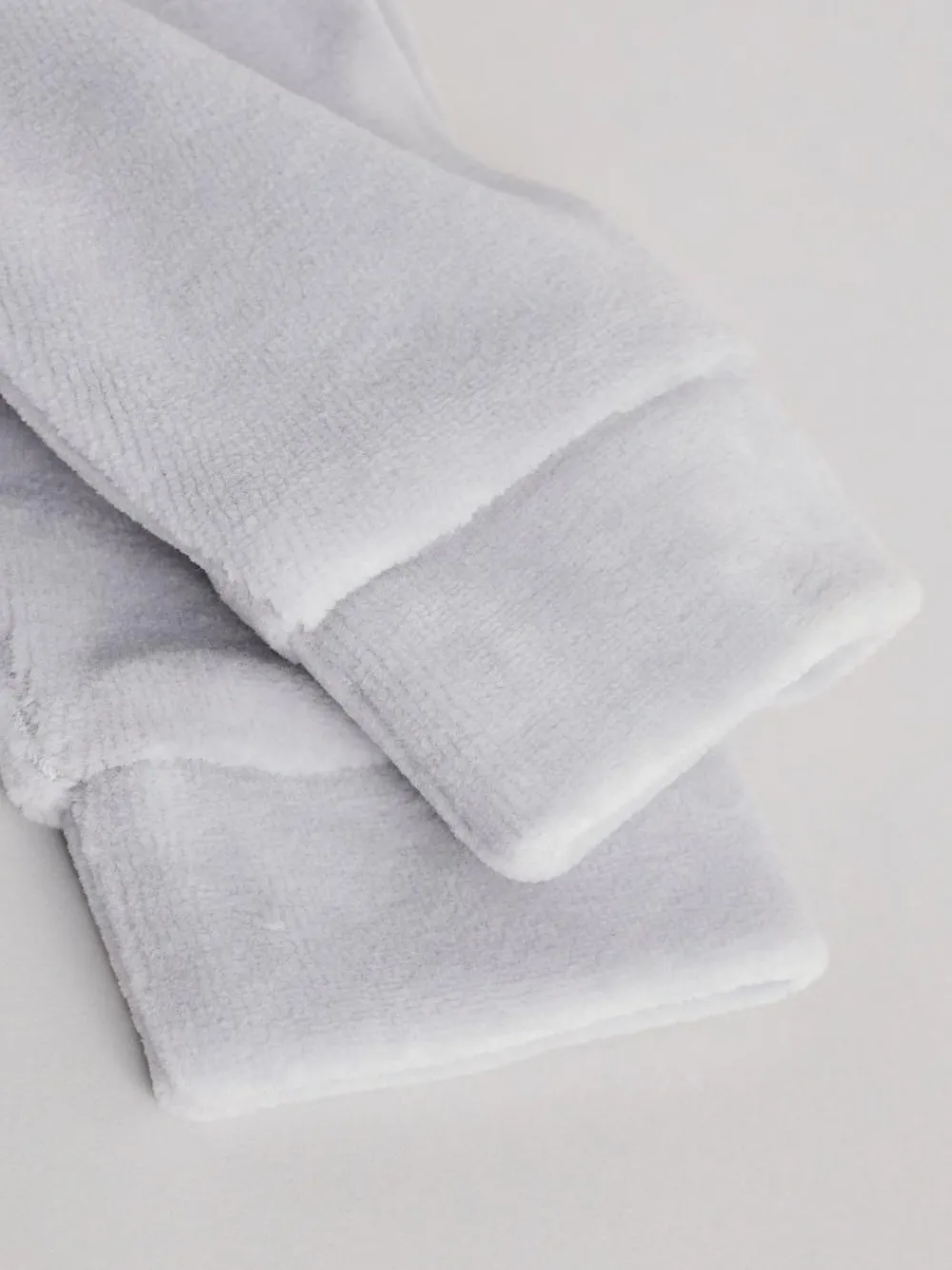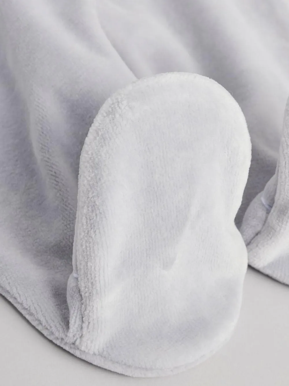 Footed sleepsuit Dinosaur embroidery Super soft velour fabric Patch pocket Long sleeves Crew neck Nickle-free popper fastenings Machine washable. 85% Cotton, 15% Polyester. Warning: Keep away from fire and flames.