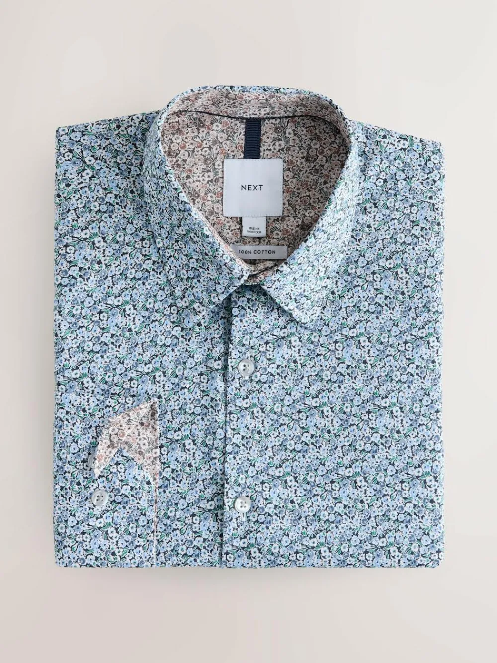 Revitalise your wardrobe with this stylish long-sleeve shirt. The soft fabric creates a comfortable feel, however grand the occasion. This versatile shirt is a perfect choice to elevate your smart-casual outfits. Ditsy pattern Regular fit Long sleeve Machine washable. 100% Cotton.