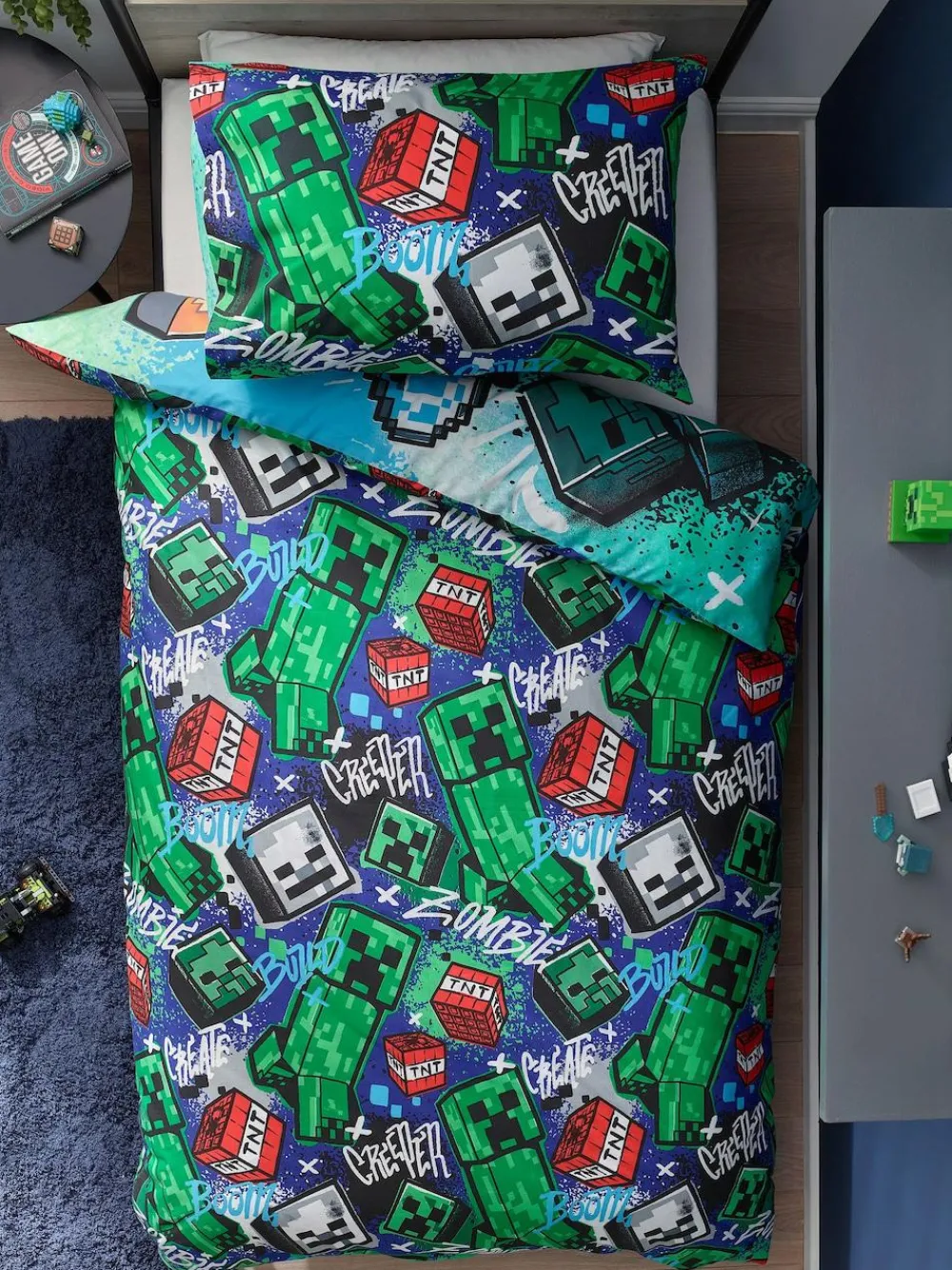 Next Blue Minecraft Single Duvet Cover and Pillowcase Set^ Childrens Bedding|Bedsets & Duvet Covers
