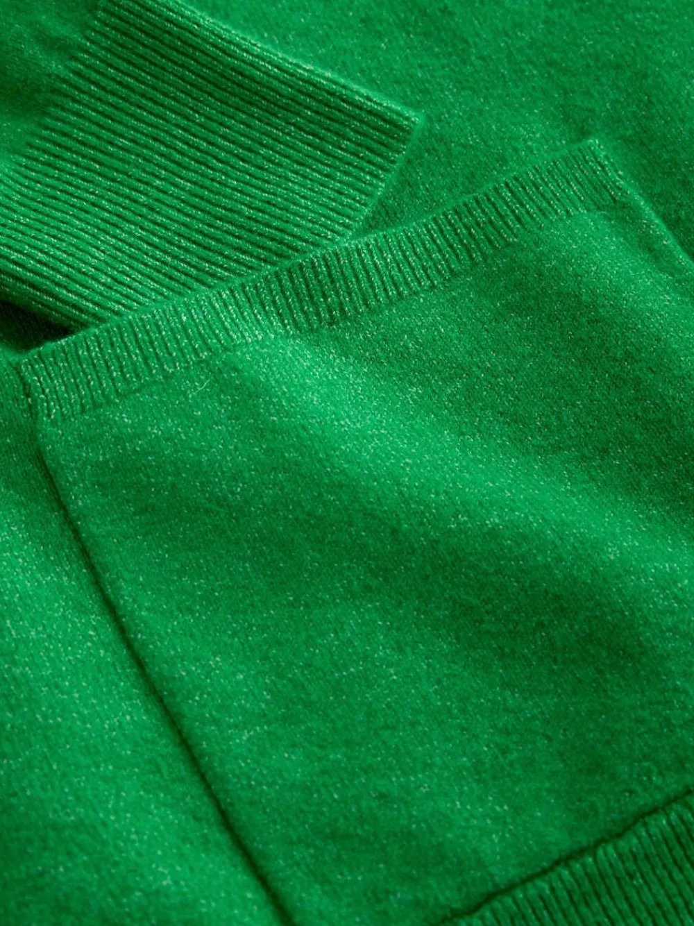 This cardigan is crafted from a supersoft knitted fabric for ultimate comfort. Designed in a relaxed fit with a low V-neckline, it features a functional button-up front with matching green buttons and two practical patch pockets. This versatile long-sleeved piece is finished with rib-knit detailing at the cuffs and hem, making it an ideal choice for effortless everyday layering. Supersoft V-neck cardigan with pockets Knitted fabric Low V-neckline and button-up front Two functional front patch pockets Machine washable. 57% Recycled polyester, 37% Acrylic, 3% Elastane, 3% Wool.
