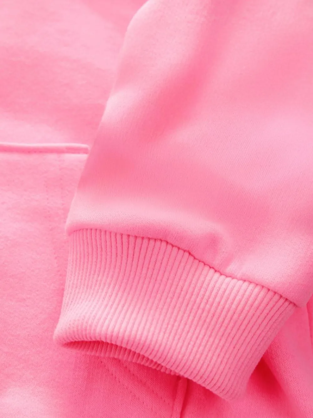 In a fluro pink cotton-rich blend, this classic quarter-zip sweatshirt will keep her cosy when layered over her favourite casual t-shirts or dresses, featuring drop shoulders, a kangaroo pocket, a tall collar and ribbed trims. Cotton-rich blend Quarter-zip fastening Tall collar Kangaroo pocket Drop shoulders Ribbed hems Machine washable. 65% Recycled polyester, 35% Cotton.