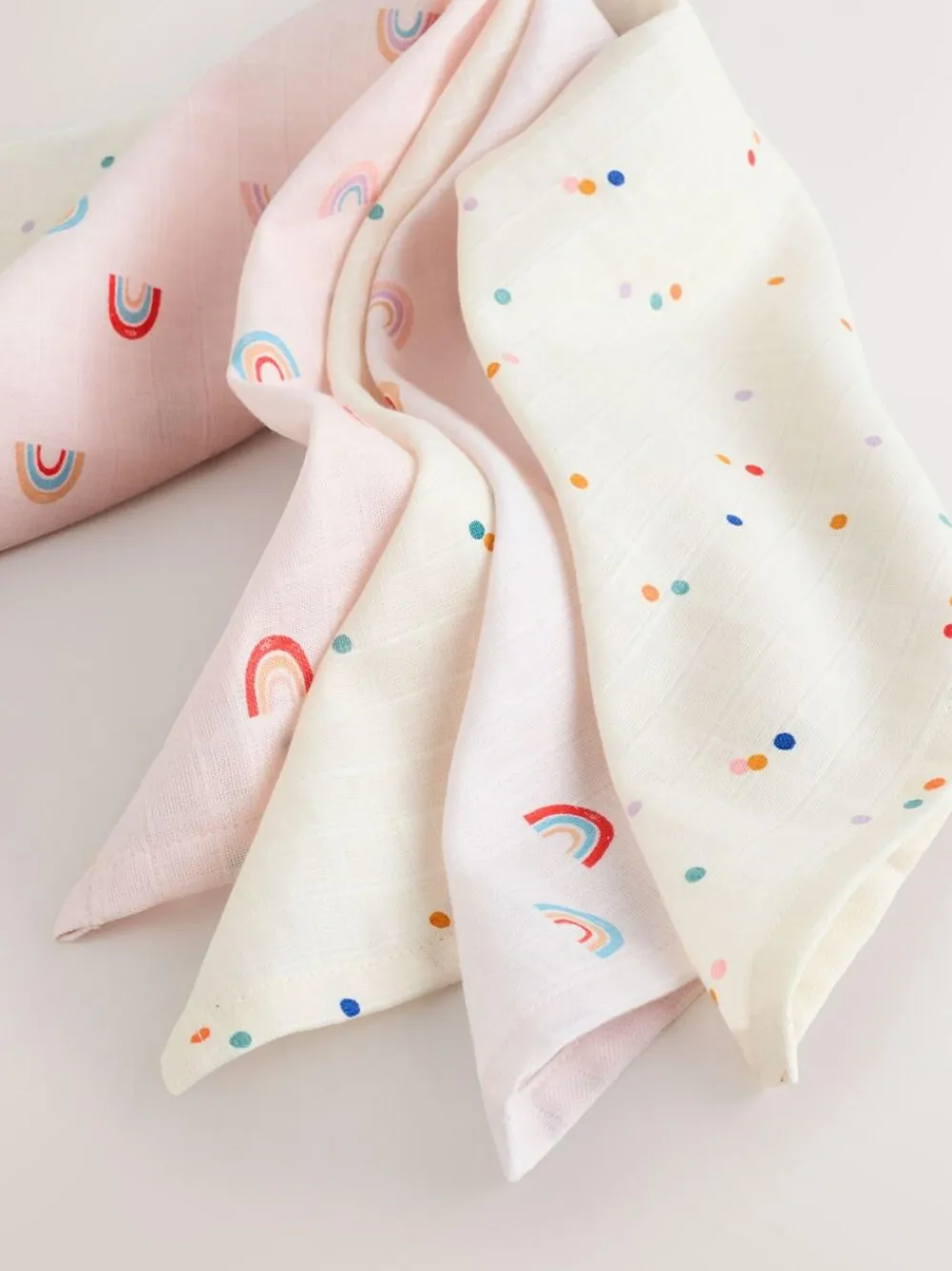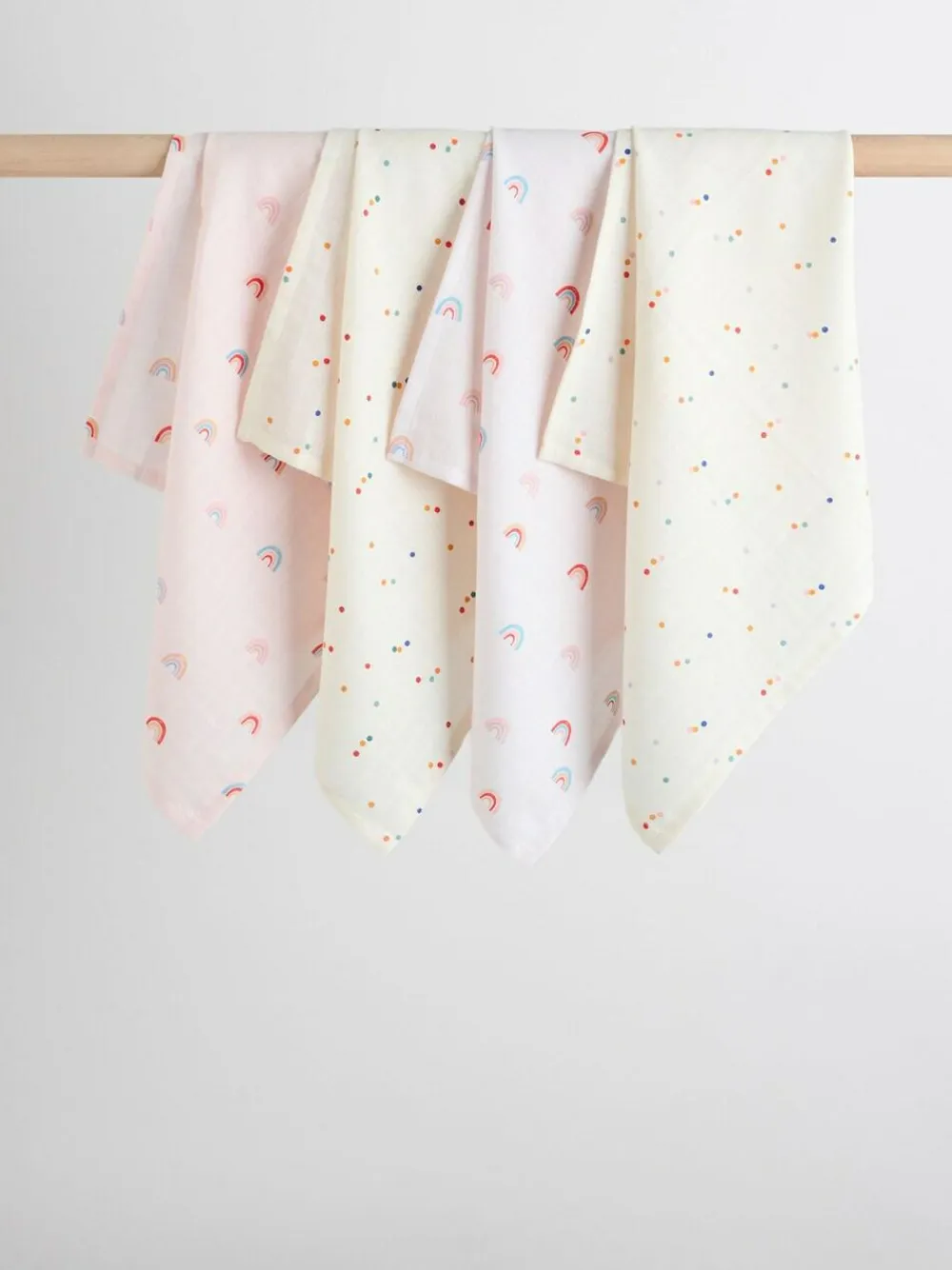 Next Bright Rainbow Baby Muslin Cloths 4 Pack^ Newborn Accessories