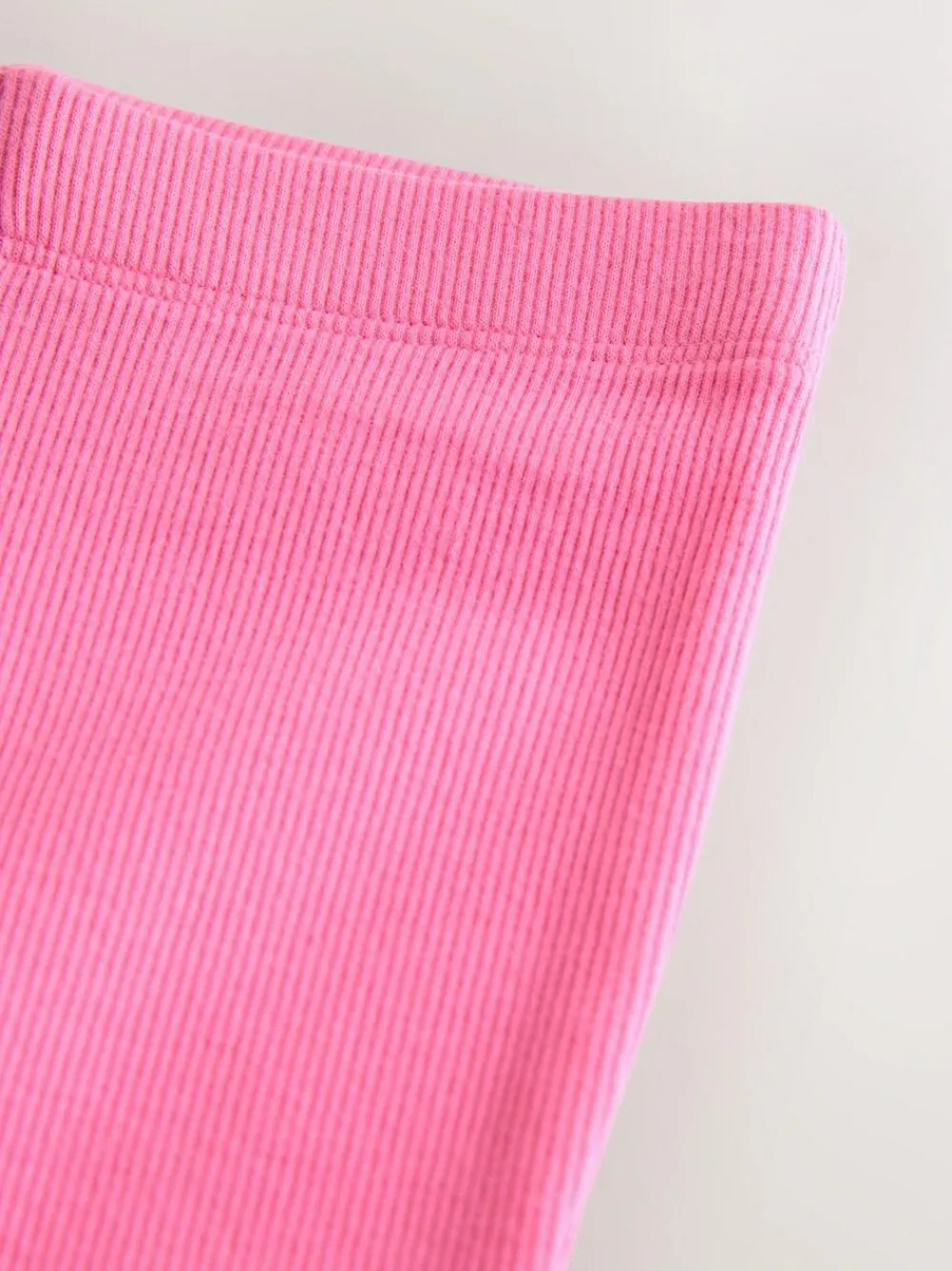 Level-up her everyday looks with our Bright sugar pink rib flare leggings. Made from a cotton rich blend for added comfort and finely finished with lettuce trim edges, an elasticated waistband and ribbed detailing. Ribbed cotton stretch fabric Elasticated waistband Pull-On style Wide-leg shape Lettuce trim edges Machine washable. 95% Cotton, 5% Elastane.