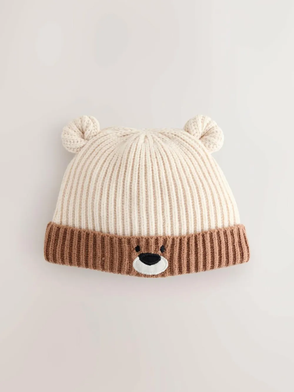 Next Brown Bear Face Ribbed Baby Beanie Hat (0mths-2yrs)^BOY Hats & Scratch Mitts|Newborn Accessories