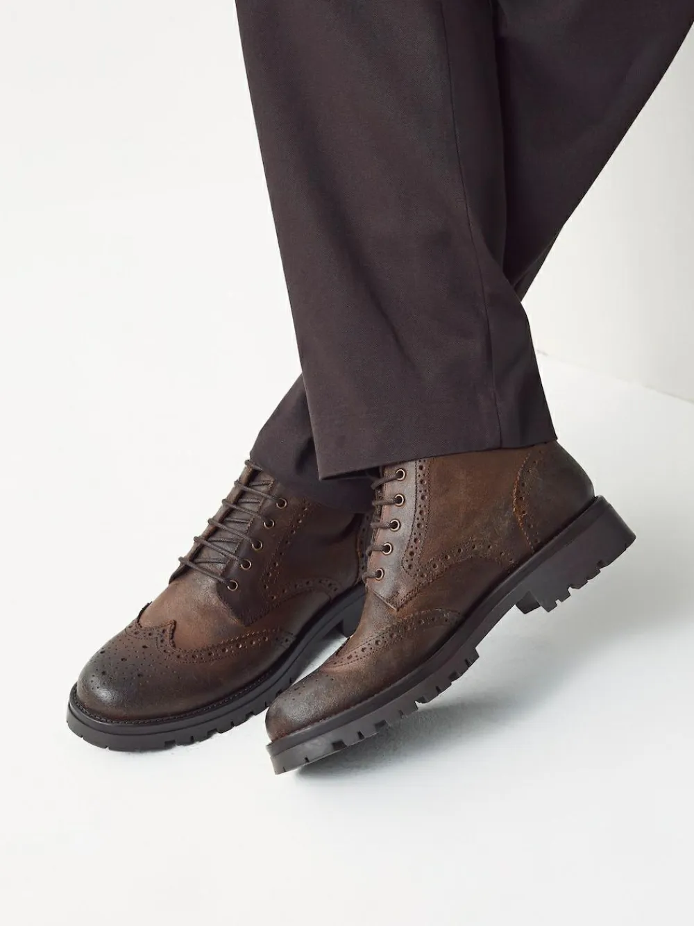 Step up your style and comfort with these Brown Tall Chunky Lace-Up Brogue Boots. These boots feature a premium leather upper with traditional brogue detailing, blending a classic, sophisticated look with a modern, rugged aesthetic. Built for all-day wear, they include an Ortholite foam insole which provides excellent comfort and breathability underfoot. The robust chunky cleated sole ensures superior grip and durability, while adding a fashionable, substantial silhouette. Leather upper Chunky cleated sole Ortholite foam insole Upper – Leather, Lining & Sock – Leather, Textile, Sole – Other Materials. Ortholite Insole