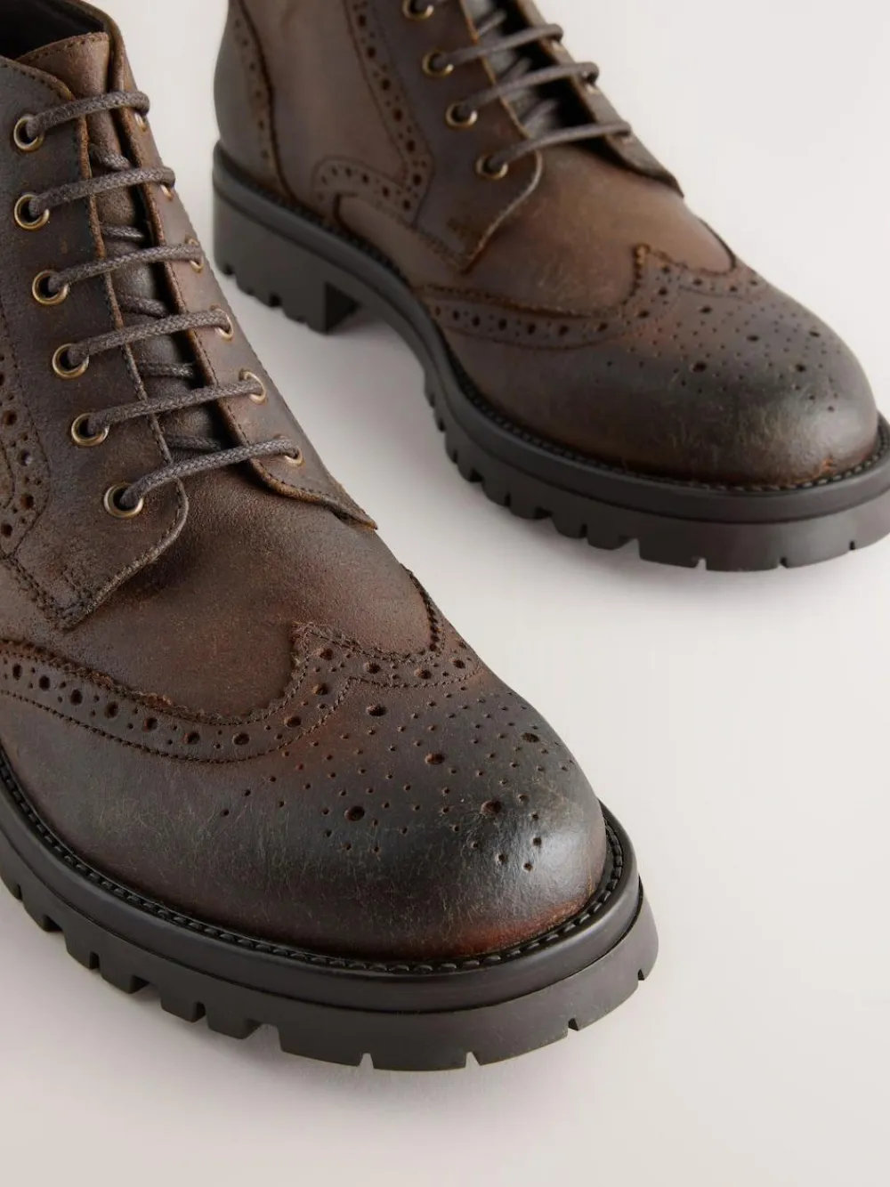 Next Brown Tall Chunky Lace-Up Brogue Boots^ Boots|Boots