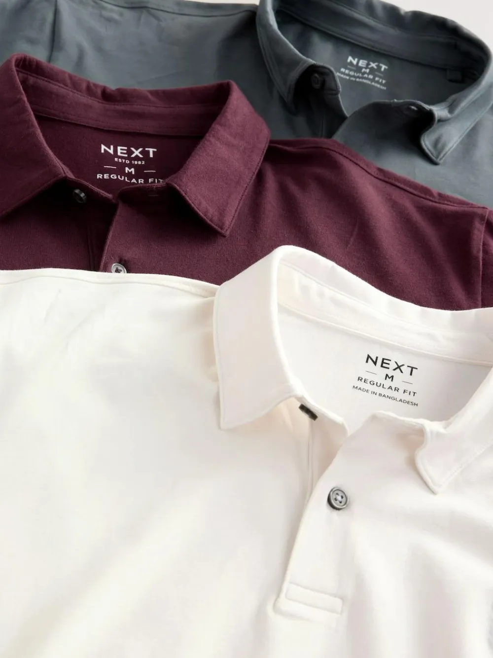 Next Burgundy Red/Charcoal Grey/Ecru Cream Regular Fit Short Sleeve Jersey Polo Shirts 3 Pack^ Tops & T-Shirts