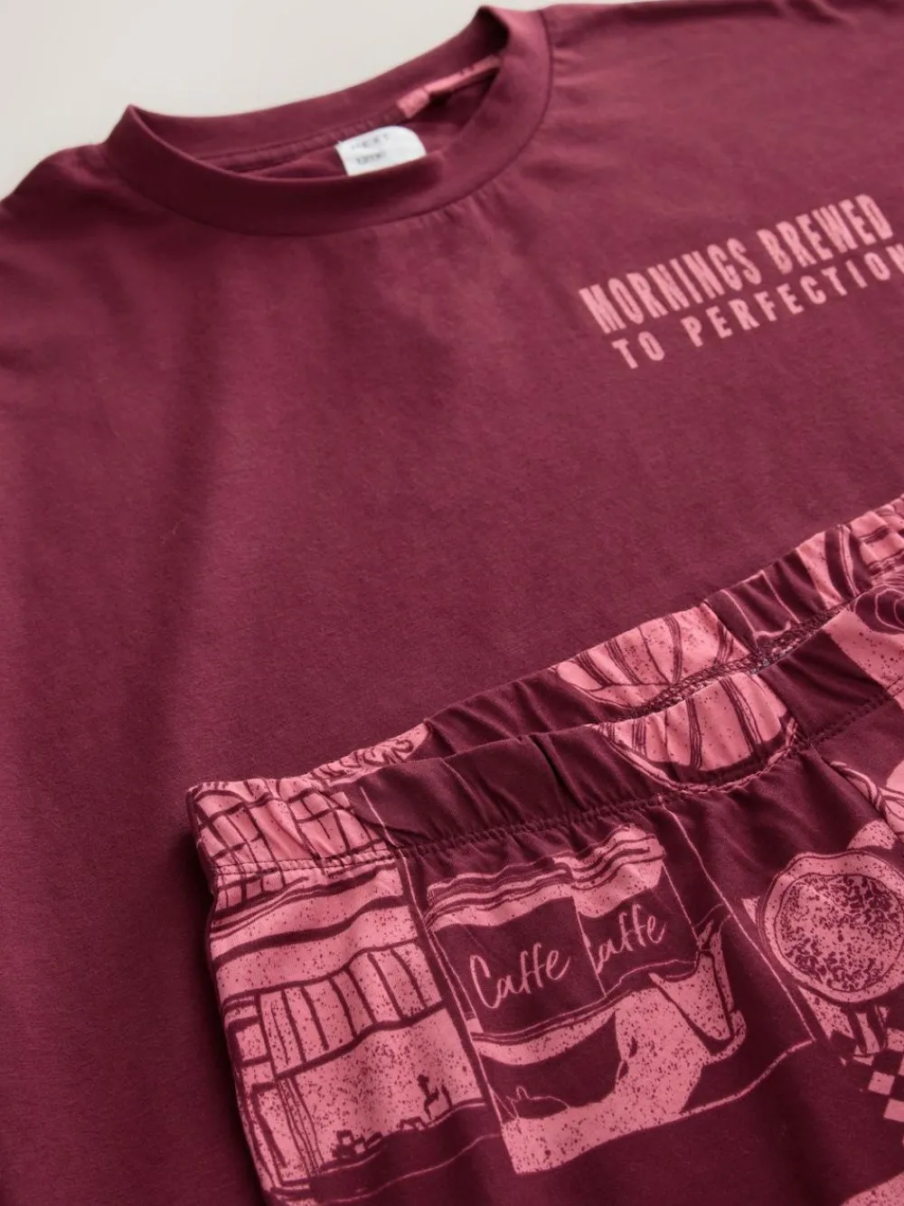 Next Burgundy Red Cotton Short Sleeve Pyjamas^Women Pyjamas|All Night & Lounge