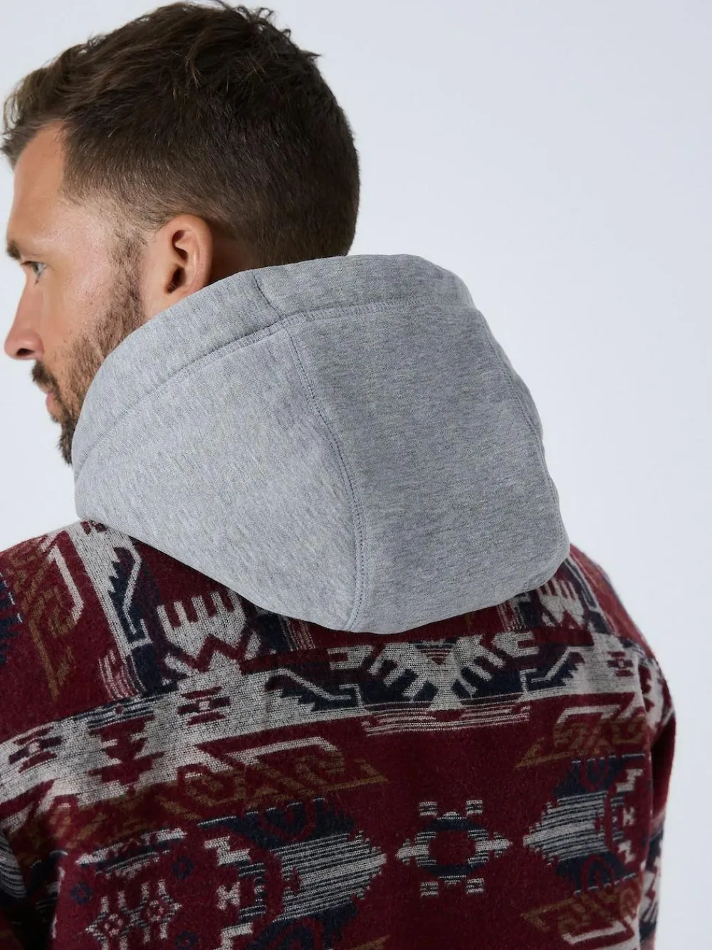 Make a distinctive statement with this Navajo style shacket. The medium-weight brushed fabric and cosy borg lining offer superior warmth, ideal for cold weather layering. The bold Navajo print is a key USP. Navajo style print Medium-weight brushed fabric Cosy borg lining Hooded Regular fit Button-up fastening Long sleeves Machine washable. Main 64% Recycled polyester, 27% Acrylic, 6% Wool, 3% Nylon. Lining 100% Recycled polyester. Hood 66% Cotton, 30% Polyester, 4% Viscose.