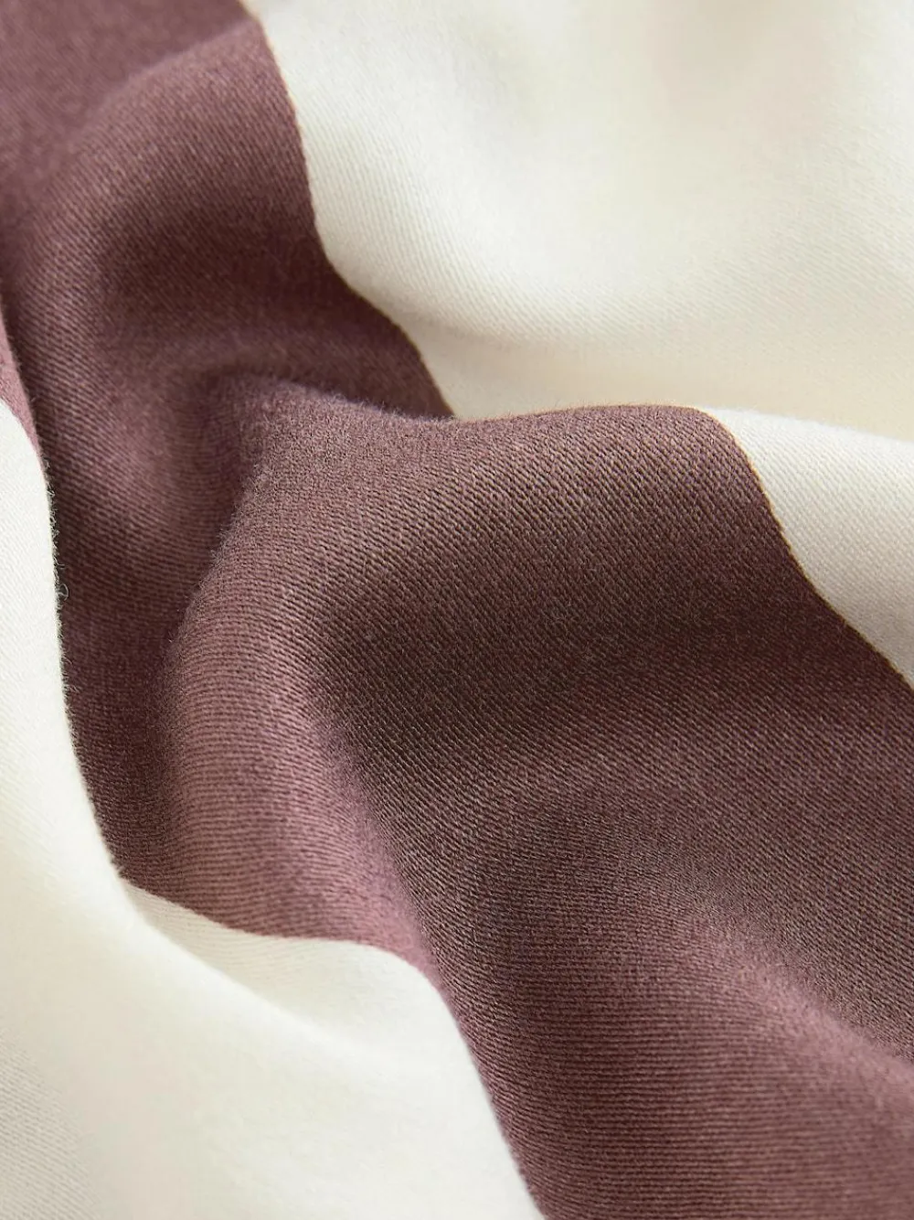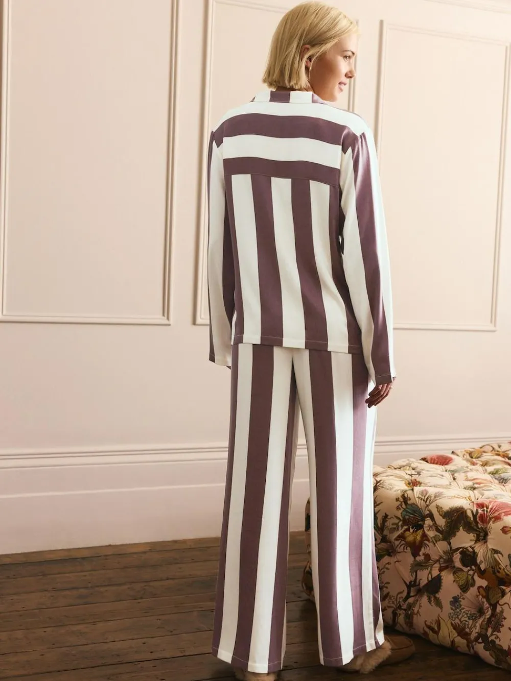 This 2-piece pyjama set has a soft fabric blend, with a berry red striped design across a button-up long-sleeve top with a single chest pocket, alongside a pair of full-length bottoms with an elasticated waistband. Regular fit 2-piece set Striped design Long sleeve top Button-up fastening Chest pocket Full-length bottoms Machine washable. Pyjama Top and Pyjama Bottom 100% LENZING™ ECOVERO™ Viscose. Items with the curve logo are available in sizes 18 and above., Warning: Keep away from fire and flames., Our tall collection is designed to fit women 5’10” and above. This has been proportionally increased through the body, leg and sleeve to achieve the perfect fit. Available in sizes 8-20.