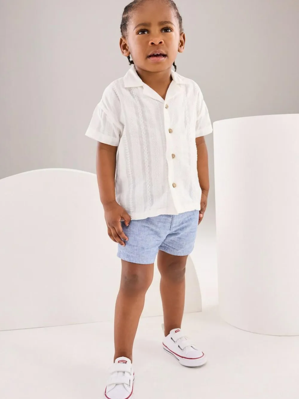 Keep his everyday style smart in our much-loved chino shorts. With a laid-back style, they’re made from comfy cotton with an adjustable waist for the perfect fit. Side slip pockets and belt loops add practical touches to this summer staple. 55% Linen, 45% Cotton.