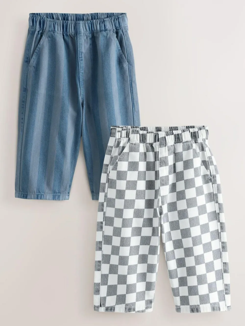 Next Checkerboard/Blue Stripe Pull On Wide Trousers 2 Pack (3mths-7yrs)^BOY Pants & Leggings|Multipacks