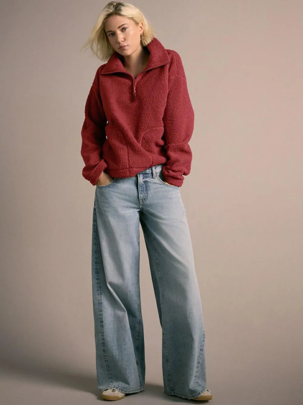 Next Cherry Red Soft Touch Cosy Teddy Borg Quarter Zip Fleece^Women Loungewear