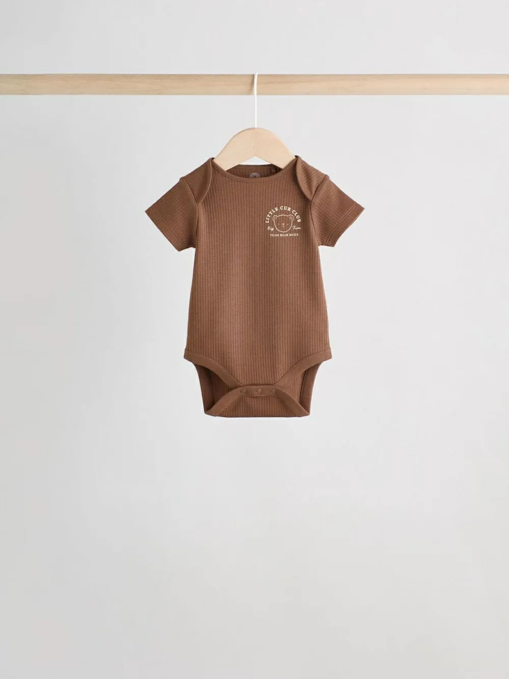 Next Chocolate Brown Baby Short Sleeve Bodysuits 5 Pack^BOY Bodysuits & Vests|Vests