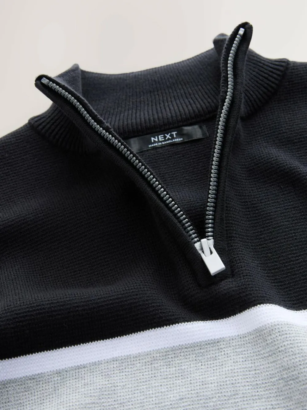 Next Colourblock Zip Neck Knitted Jumper (3-16yrs)^BOY Knitwear & Sweaters|Knitwear