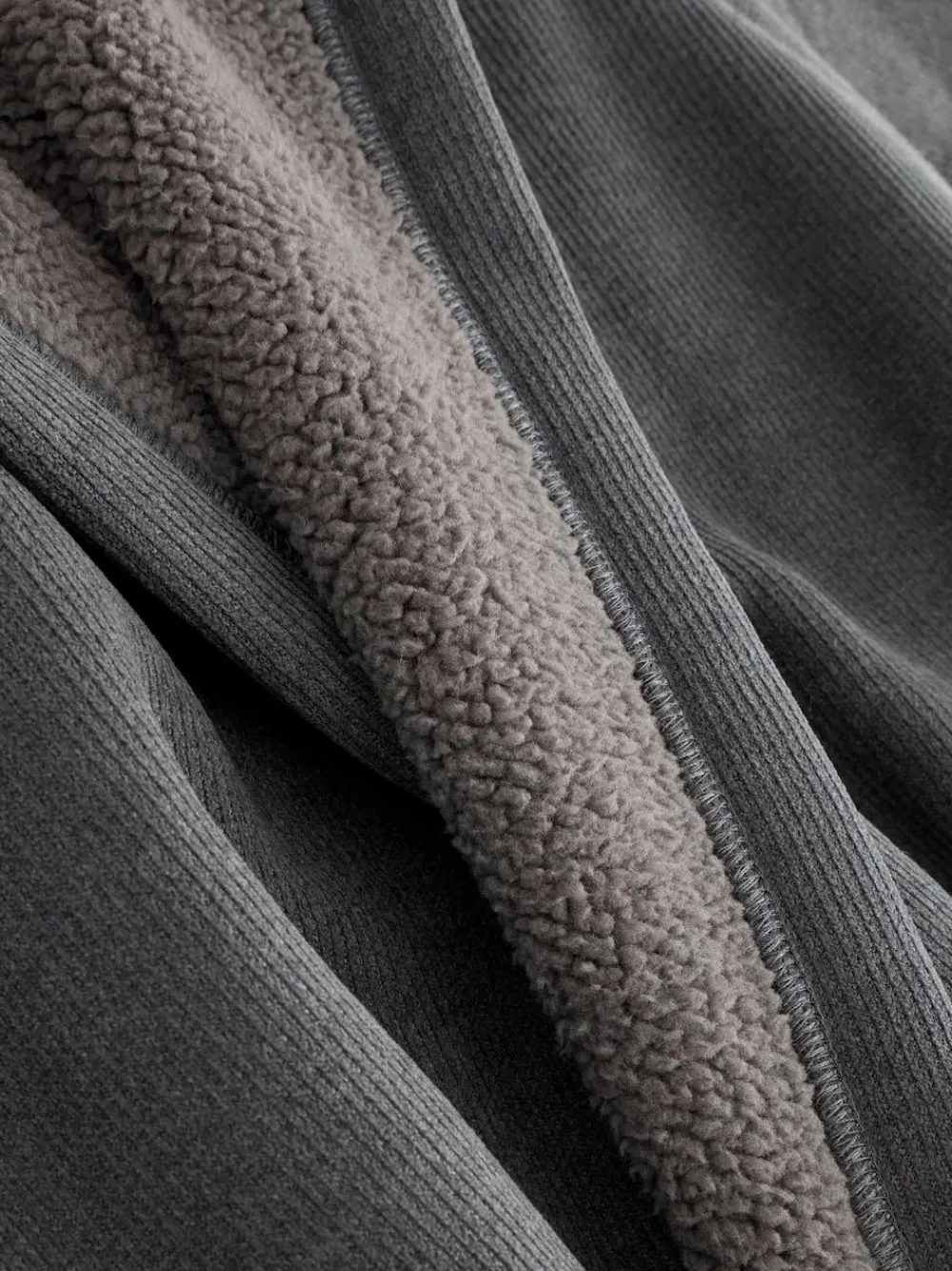 Indulge in luxury with this corded-textured dressing gown. The borg lining is soft and provides extra warmth, making it perfect for ultimate lounging and cosiness. The belted waist allows for an adjustable, comfortable fit. This piece offers a standard fit and is best used for wrapping up on cold evenings. Corded-textured fabric Borg lined for extra warmth Hooded Belted tie waist Two front pockets Long sleeves 100% Recycled polyester. Warning: Keep away from fire and flames.
