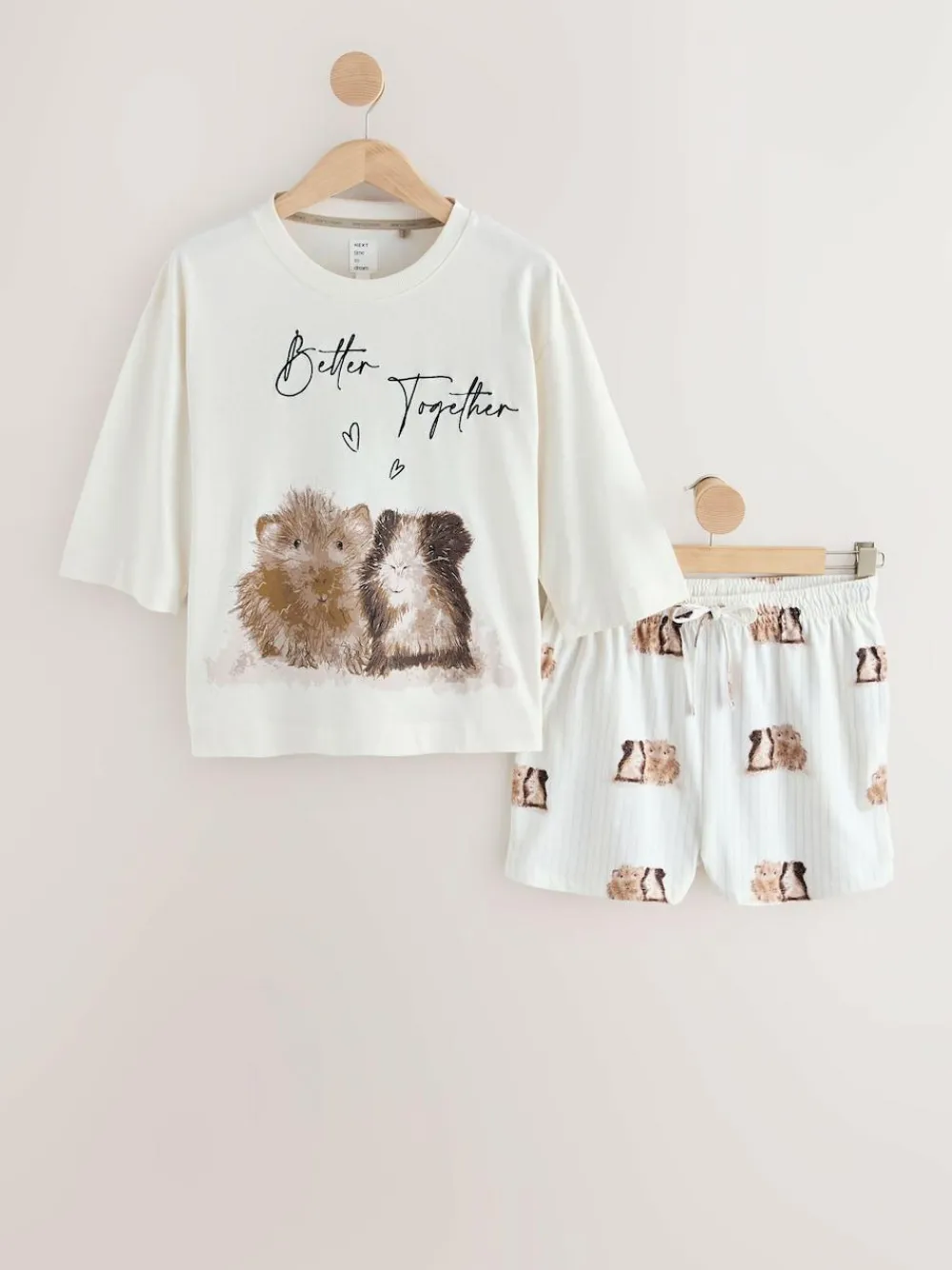Next Cream Guinea Pig Short Pyjamas Set^Women Pyjamas|All Night & Lounge