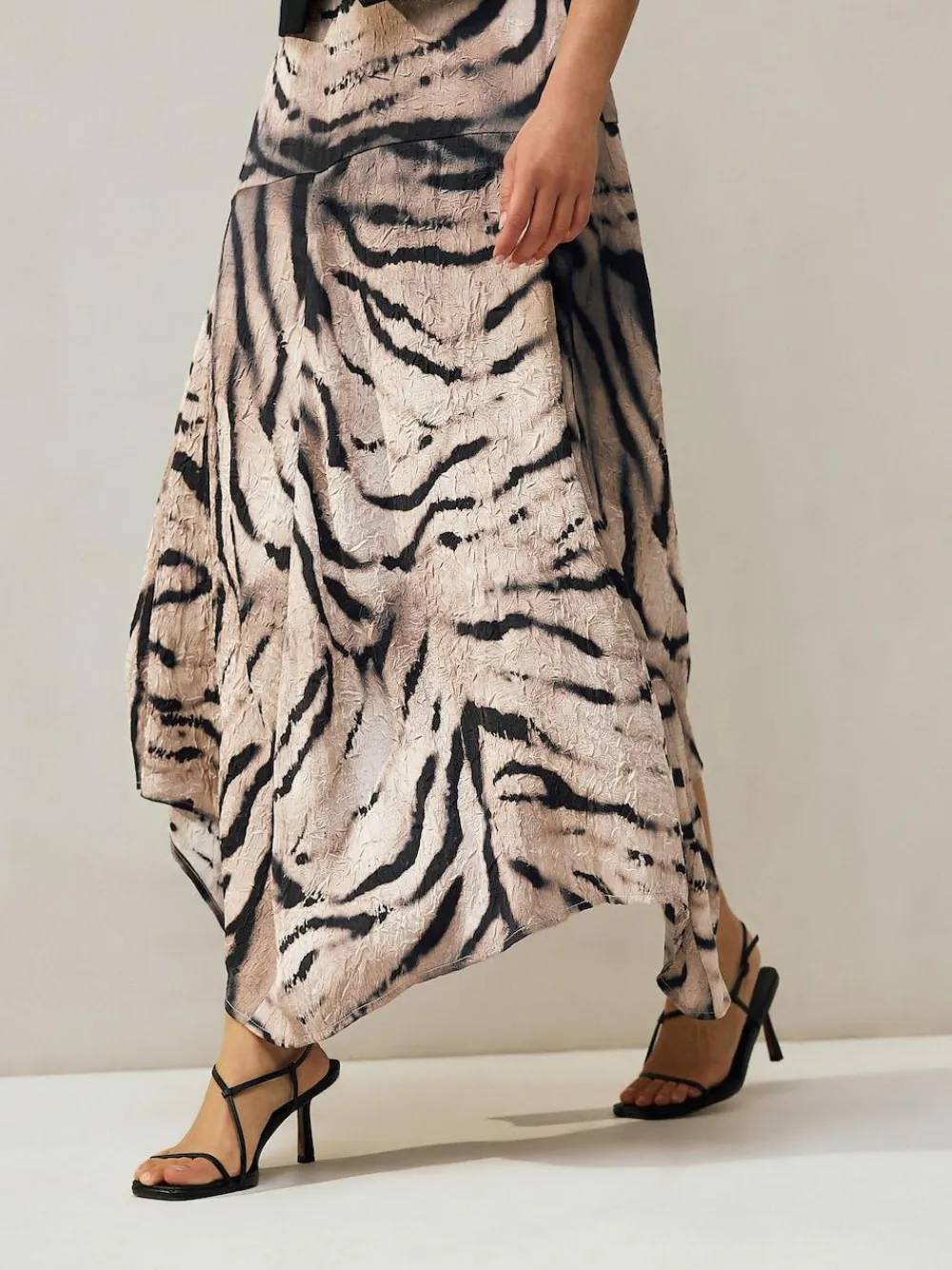 Effortlessly elegant, this asymmetrically hemmed midi skirt is a perfect addition to your evening wardrobe. The lightweight crinkle satin fabric provides a gorgeous, flowing shape, while a front panel around the waist and a side zip create a flattering silhouette. Crinkle satin fabric Asymmetrical hem Side zip Regular waistband to hem 36″ / 91cm. Machine washable. 50% Recycled polyester, 50% Polyester. Items with the curve logo are available in sizes 18 and above., Our tall collection is designed to fit women 5’10” and above. This has been proportionally increased through the body, leg and sleeve to achieve the perfect fit. Available in sizes 8-20.