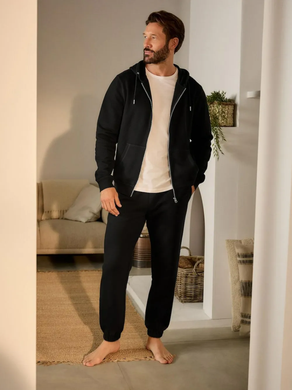 Discover superior comfort with these essential joggers. Crafted from a super soft sueded fabric and featuring a brushed inside for exceptional warmth, they are perfect for relaxation and loungewear styling. The ribbed waistband and cuffs ensure a secure, comfortable fit for both lounging and casual wear. Super soft sueded fabric Brushed inside for comfort Ribbed waistband and cuff Elasticated waistband with drawstring Side pockets Machine washable. 87% Cotton, 13% Recycled polyester. Warning: Keep away from fire and flames.