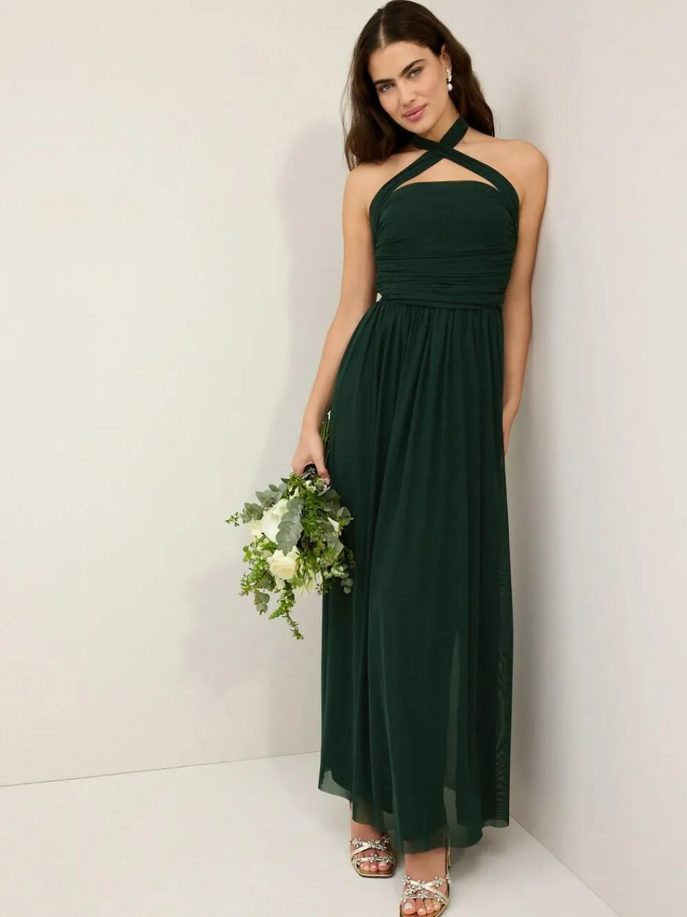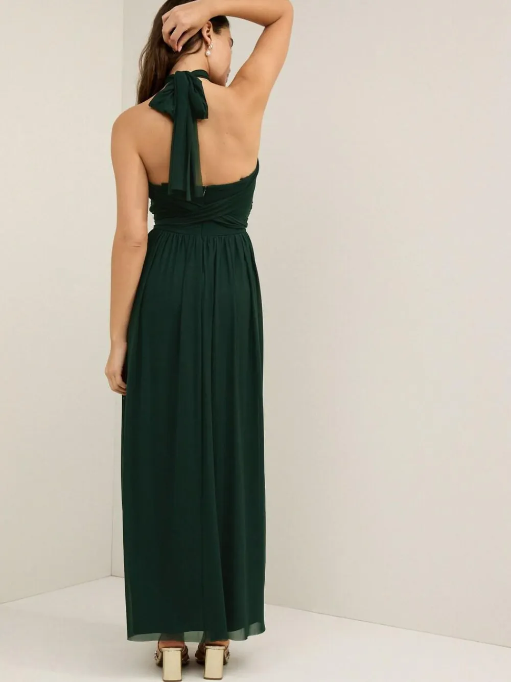 Next Dark Green Mesh Multiway Wedding Guest Bridesmaid Maxi Dress^Women Occasion Dresses|Maxi Dresses