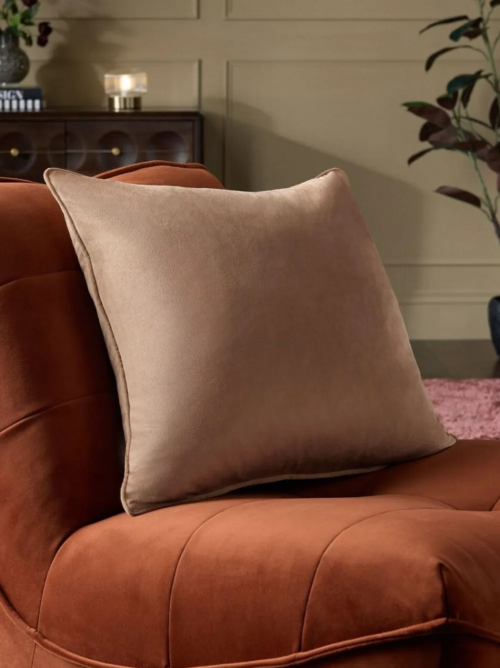 Next Dark Natural 59 x 59cm Matte Velvet Cushion^ Cushions & Throws