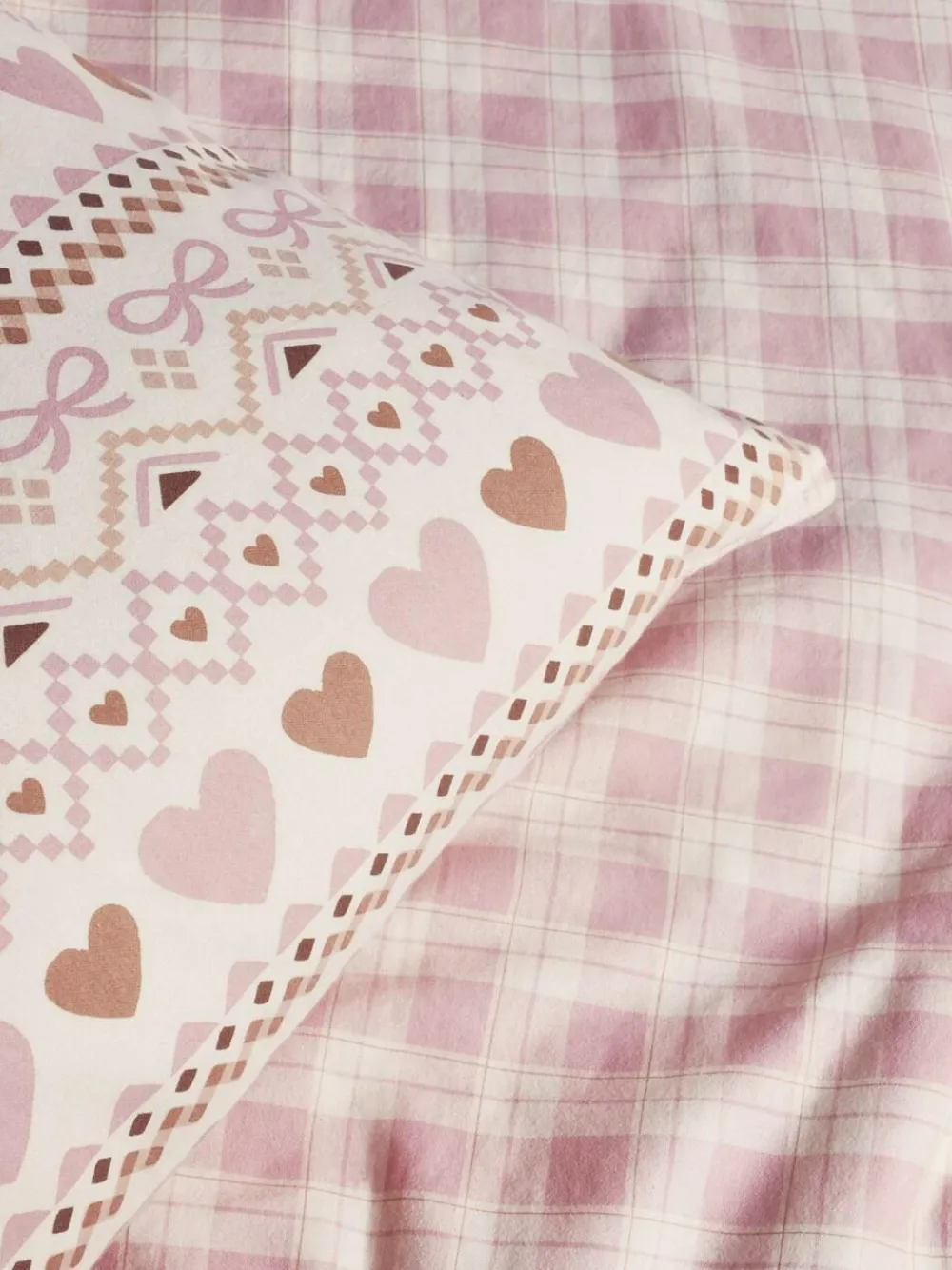 Next Duvet Cover and Pillowcase Set Pink Fairisle heart Super Soft Brushed cotton