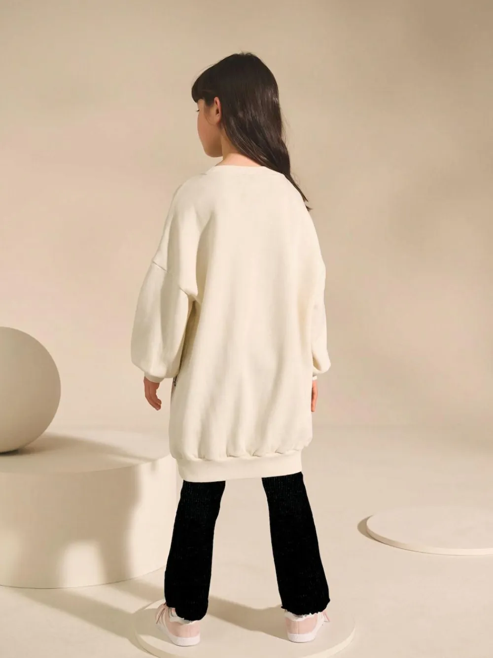 In cotton-rich jersey fabric, this stylish jumper dress will keep her cosy, featuring an oversized shape with a crewneck collar, ribbed hems and a woven label above the hem. Pairs perfectly with leggings or tights for the transitional months. Oversized shape Cotton-rich fabric Crewneck collar Ribbed hems Woven label 82% Cotton, 18% Recycled polyester.