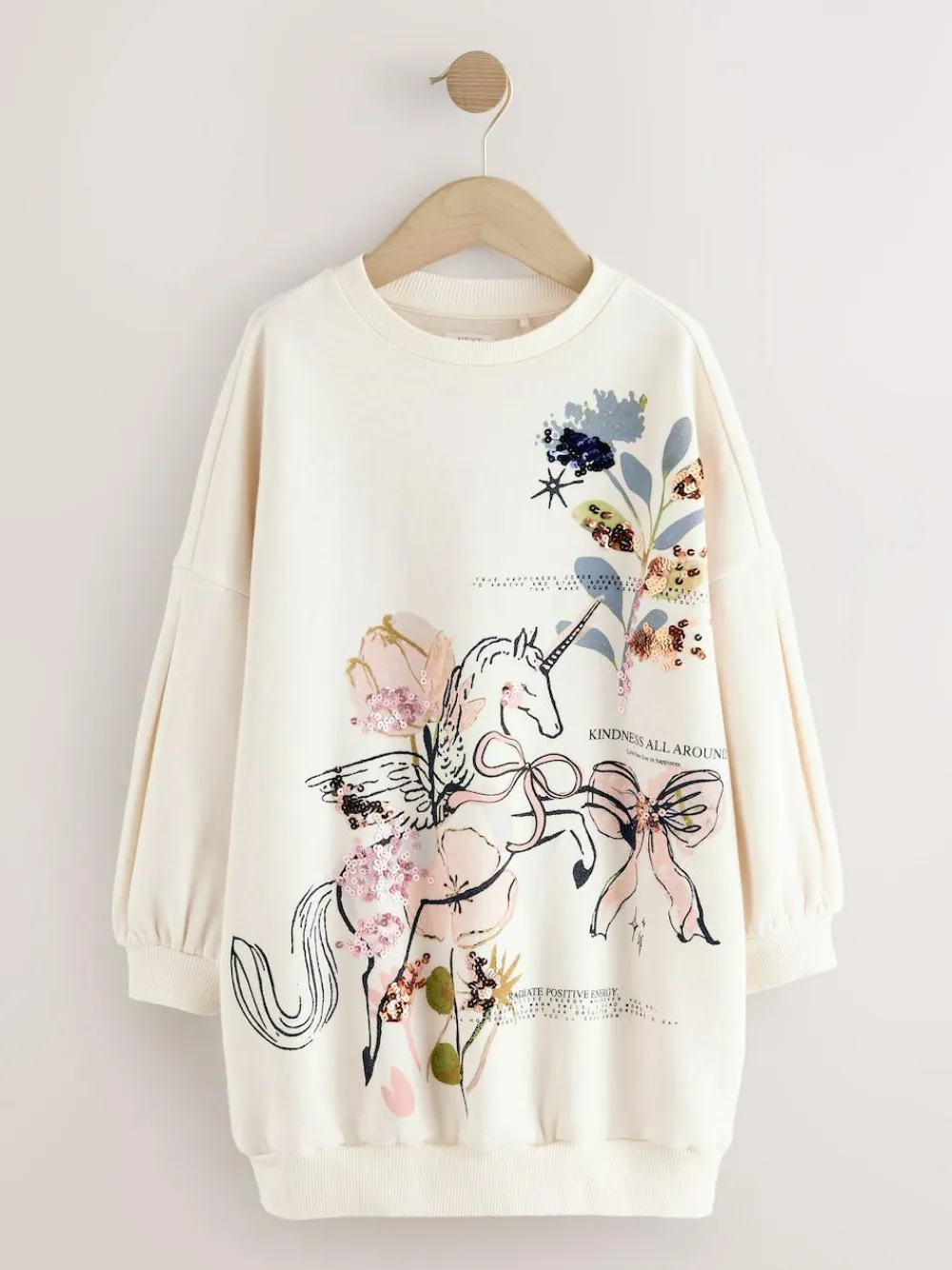 Next Ecru Unicorn Graphic Jumper Dress (3-16yrs)^ Knitwear & Sweaters|Knitwear