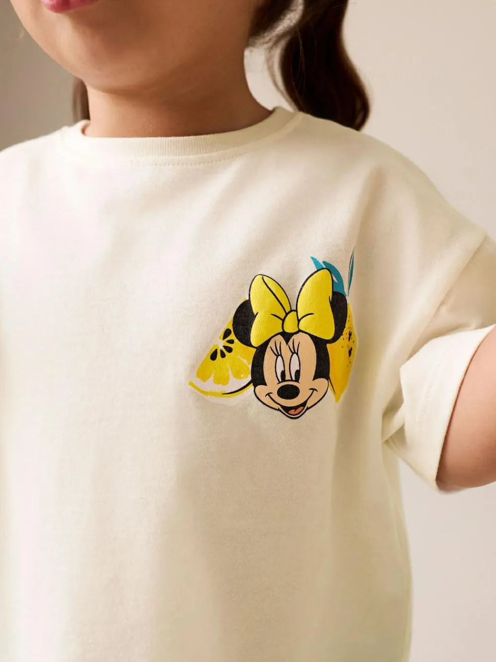 Next Ecru White Disney Minnie and Mickey Short Sleeve Top and Shorts Set (3mths-7yrs)^ Baby Girls|Tops