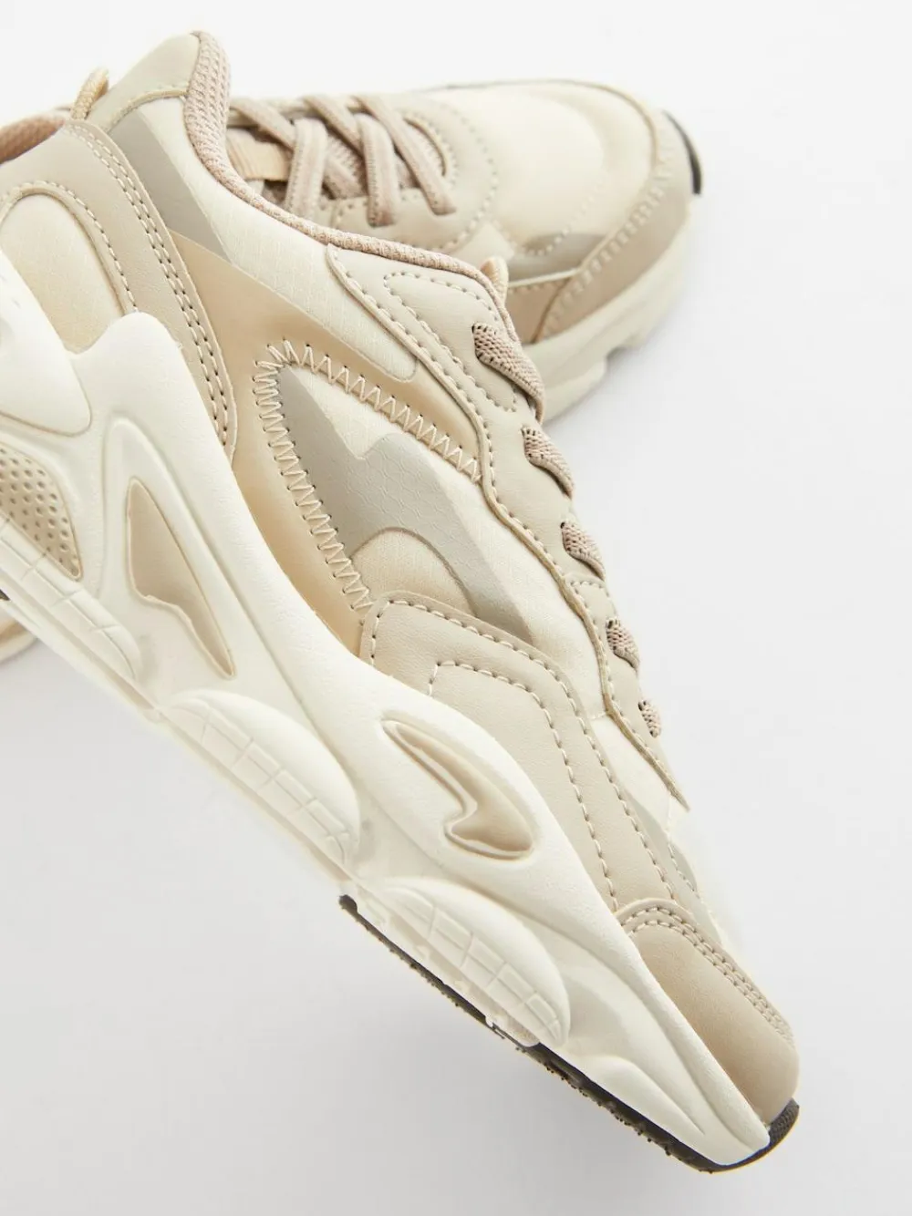 These stylish and modern streetwear-inspired neutral trainers are perfect for any collection, featuring a paneled upper with elasticated laces for easy wear, a cushioned foam midsole for added comfort and a chunky durable outsole. Paneled upper Elasticated laces Cushioned foam midsole Chunky outsole View the How to Measure and Fit at Home Guide Upper – Other Materials, Textile, Lining & Sock – Textile, Sole – Other Materials.