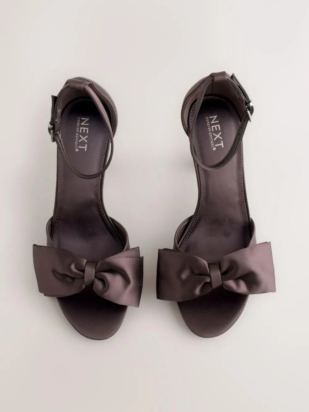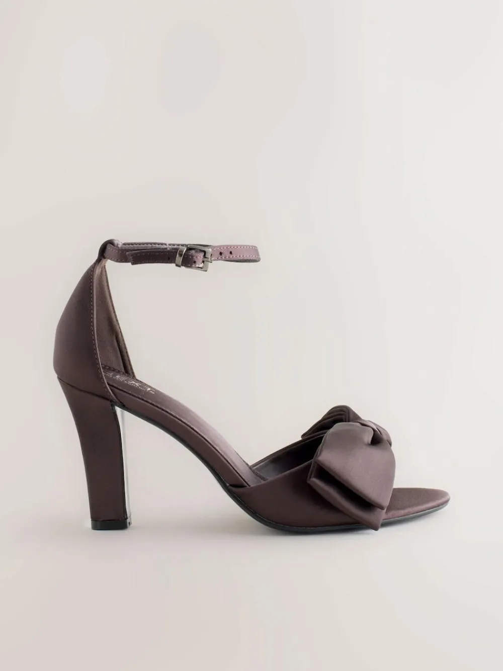 Step out in style with these elegant heeled sandals in chocolate brown. The satin upper offers a luxe feel, while the bow detailing and block heel create a sophisticated look. With Forever Comfort® padding and an adjustable ankle strap, you’ll be comfortable all night. Satin upper Forever Comfort® padding Bow detailing Adjustable ankle strap Block heel Heel height 10cm. Upper – Textile, Lining & Sock – Other Materials, Sole – Other Materials.