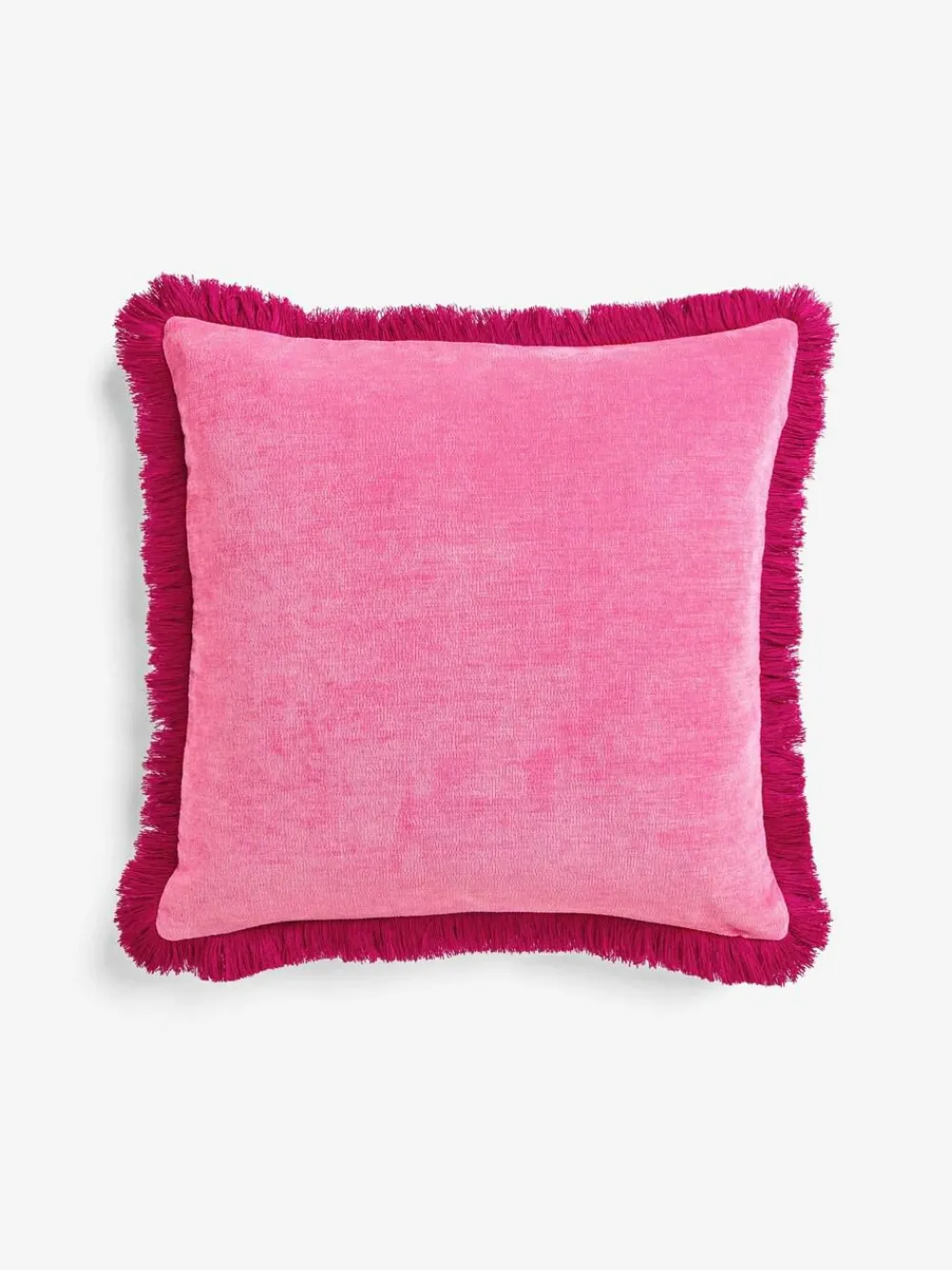 Next Fushsia Pink 45 x 45cm Soft Velour Contrast Fringe Cushion^ Cushions & Throws