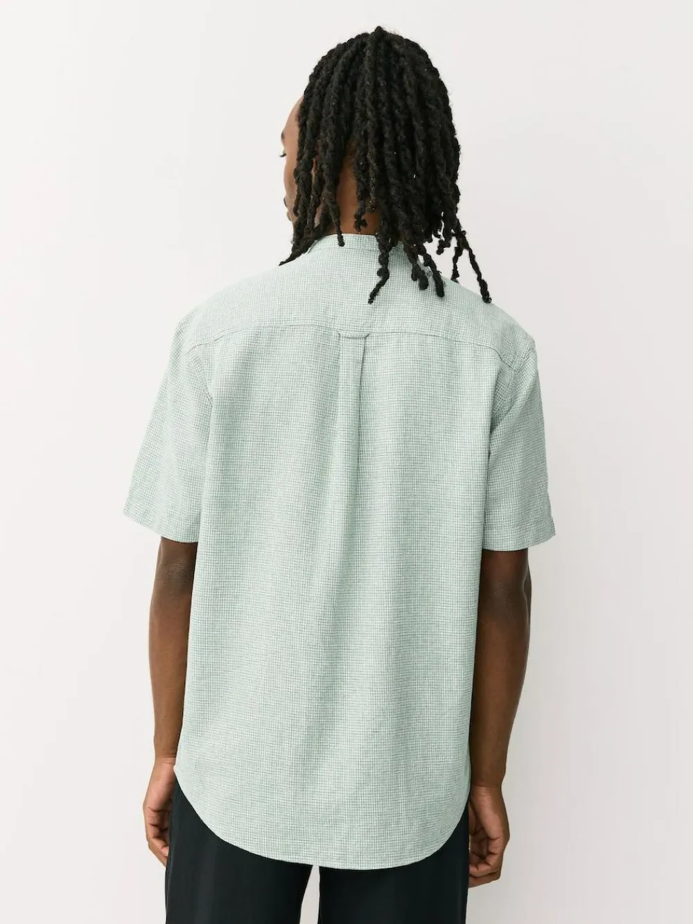 Achieve effortless warm-weather style with this green Cotton Linen Blend Short-Sleeve Shirt. Crafted from a breathable 100% cotton-linen blend in a light-weight fabric, it’s designed to keep you cool. The button-down collar, neat button-up fastening, and comfortable regular-fit make it an ideal, easy-to-wear piece for casual summer days. Available in standard sizes. Green Grandad collar Crafted from 100% cotton-linen blend Light-weight and breathable fabric Classic button-down collar Comfortable regular-fit Short sleeve design Available in standard sizes Best for casual warm-weather wear 70% Cotton, 30% Linen.