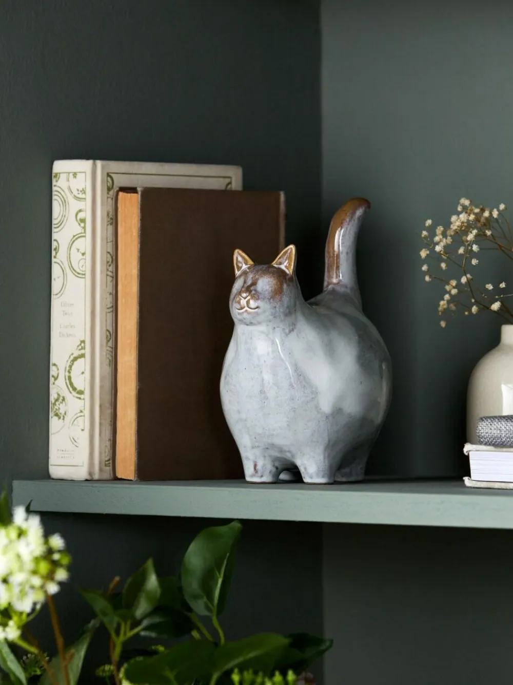 Our cute chubby ceramic cat is the perfect subtle but conversational piece to style your home. Featuring a stunning reactive glaze so each piece will be unique. Gift to a friend or loved one who loves cats! Height 16cm Width 11cm Depth 18.5cm 100% Stoneware.