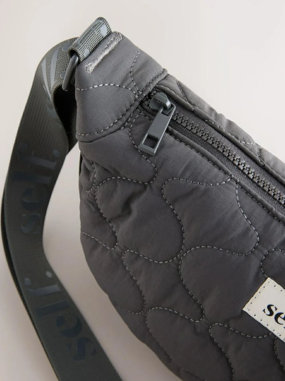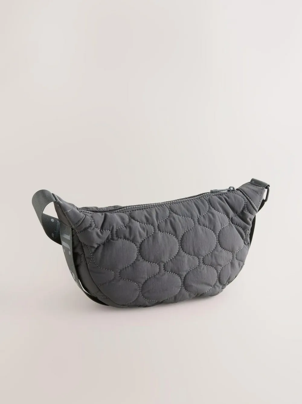 Stay effortlessly on-trend with this practical nylon sling bag. Featuring a curved shape and stylish quilted material, it offers subtle texture. The bold, branded adjustable strap ensures a comfortable, customised fit, while the secure zip fastening keeps essentials safe. Perfect for cool, hands-free casual wear. Quilted nylon material Branded adjustable strap Zip fastening Sling/cross-body style Height 15.5cm Width 30cm Depth 9.5cm Main 100% Nylon. Lining 100% Recycled polyester. Trim 100% Polyester.