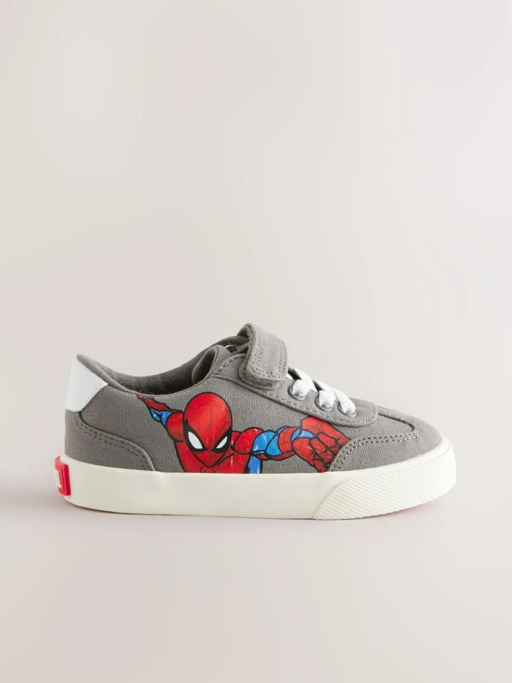 Next Grey Standard Fit (F) Spiderman Touch Fastening Elastic Lace Trainers^ First Shoes