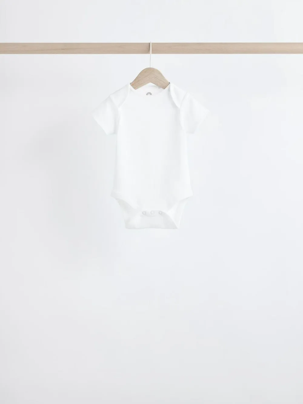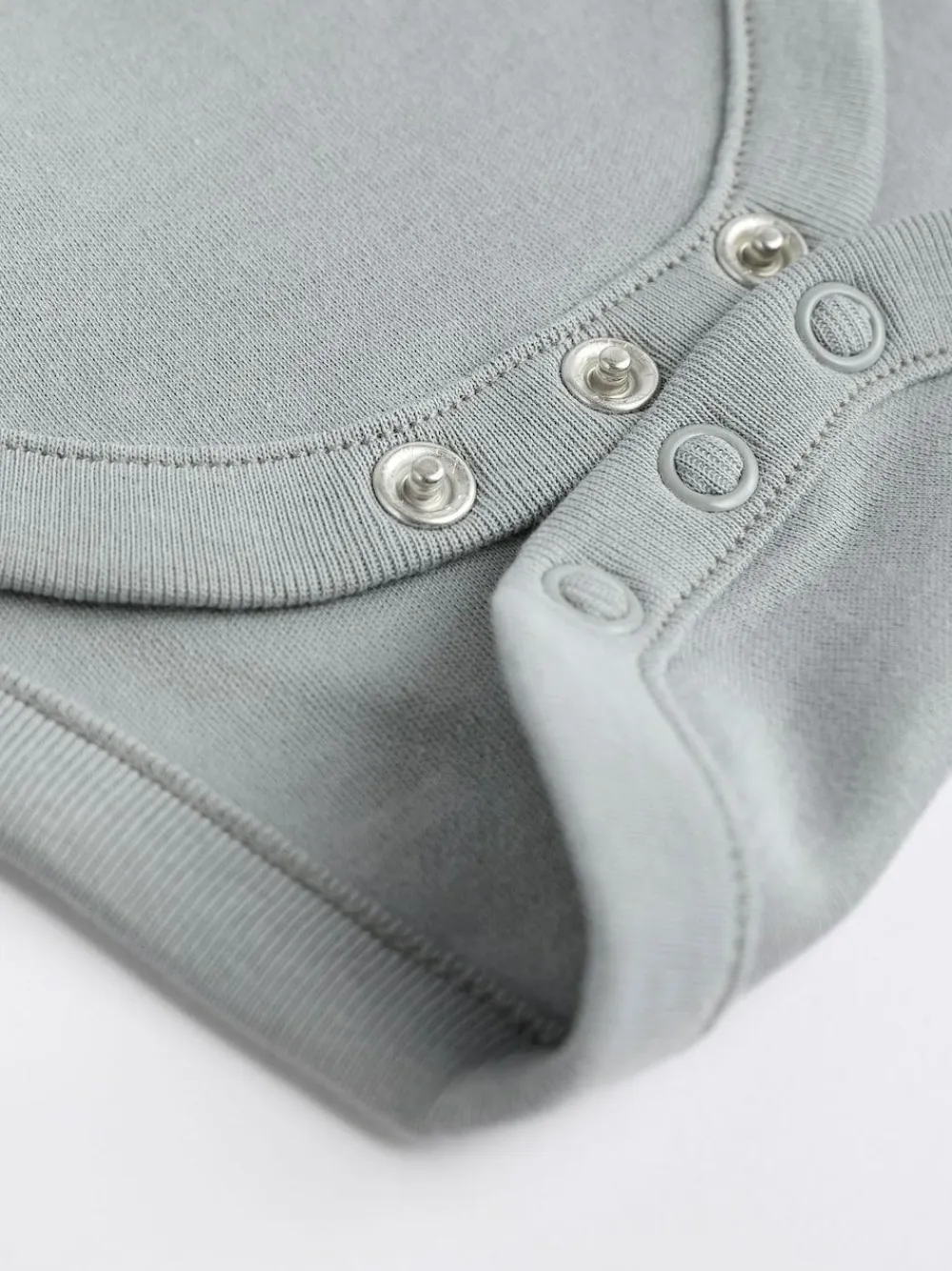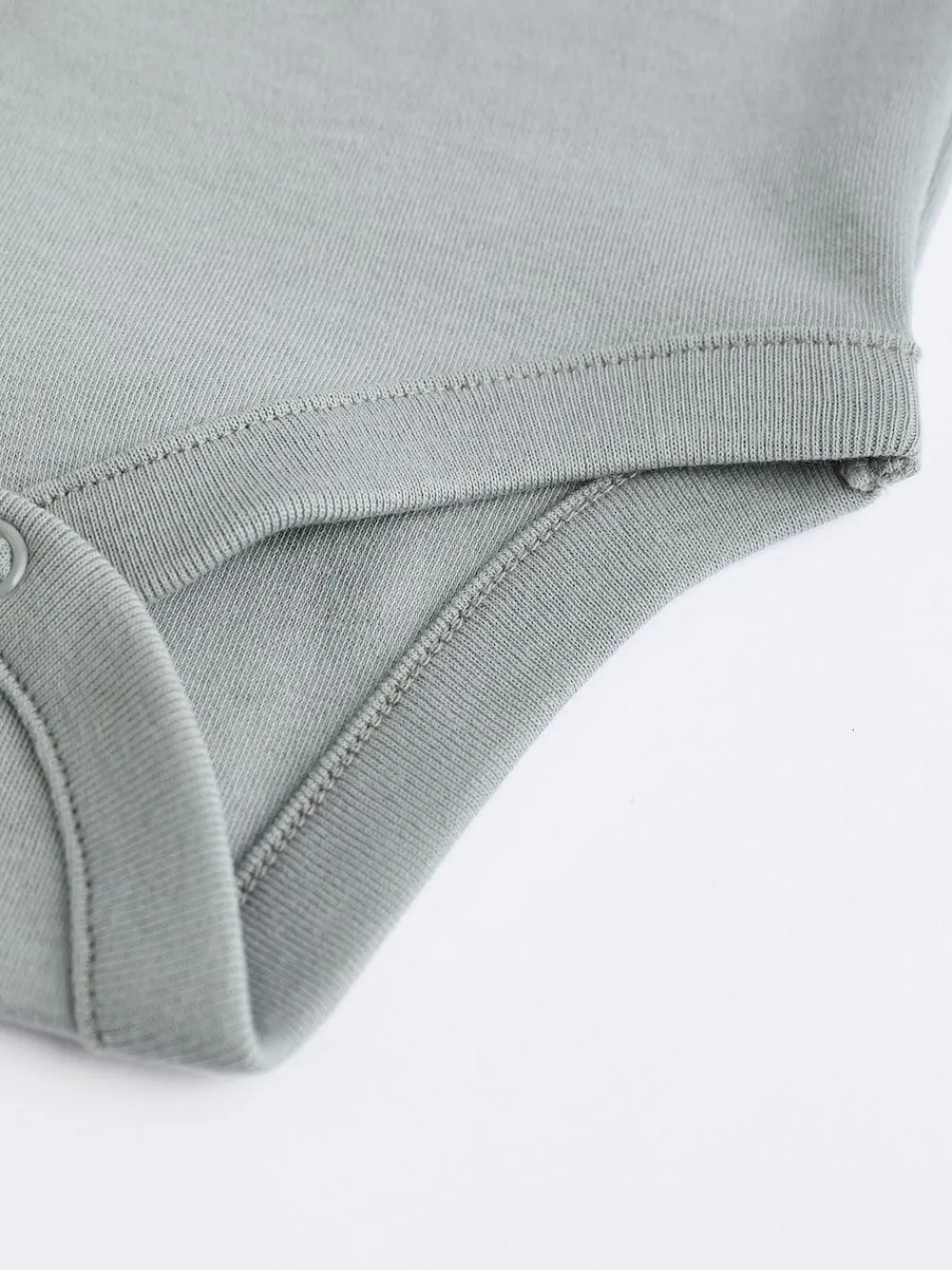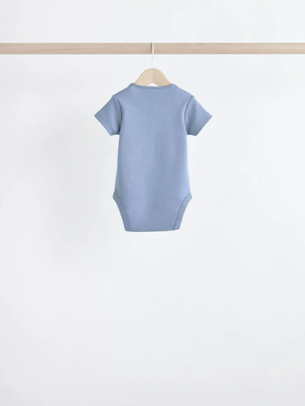 Keep your little one stocked-up on comfort staples with this grey, blue and white 5-pack of pure cotton bodysuits, featuring an envelope neck opening and a popper bottom fastening for easy changing. 100% cotton 5-pack Short sleeves Envelope neck opening Popper bottom fastening Machine washable. 5 x Bodysuit 100% Cotton. Warning: Keep away from fire and flames.