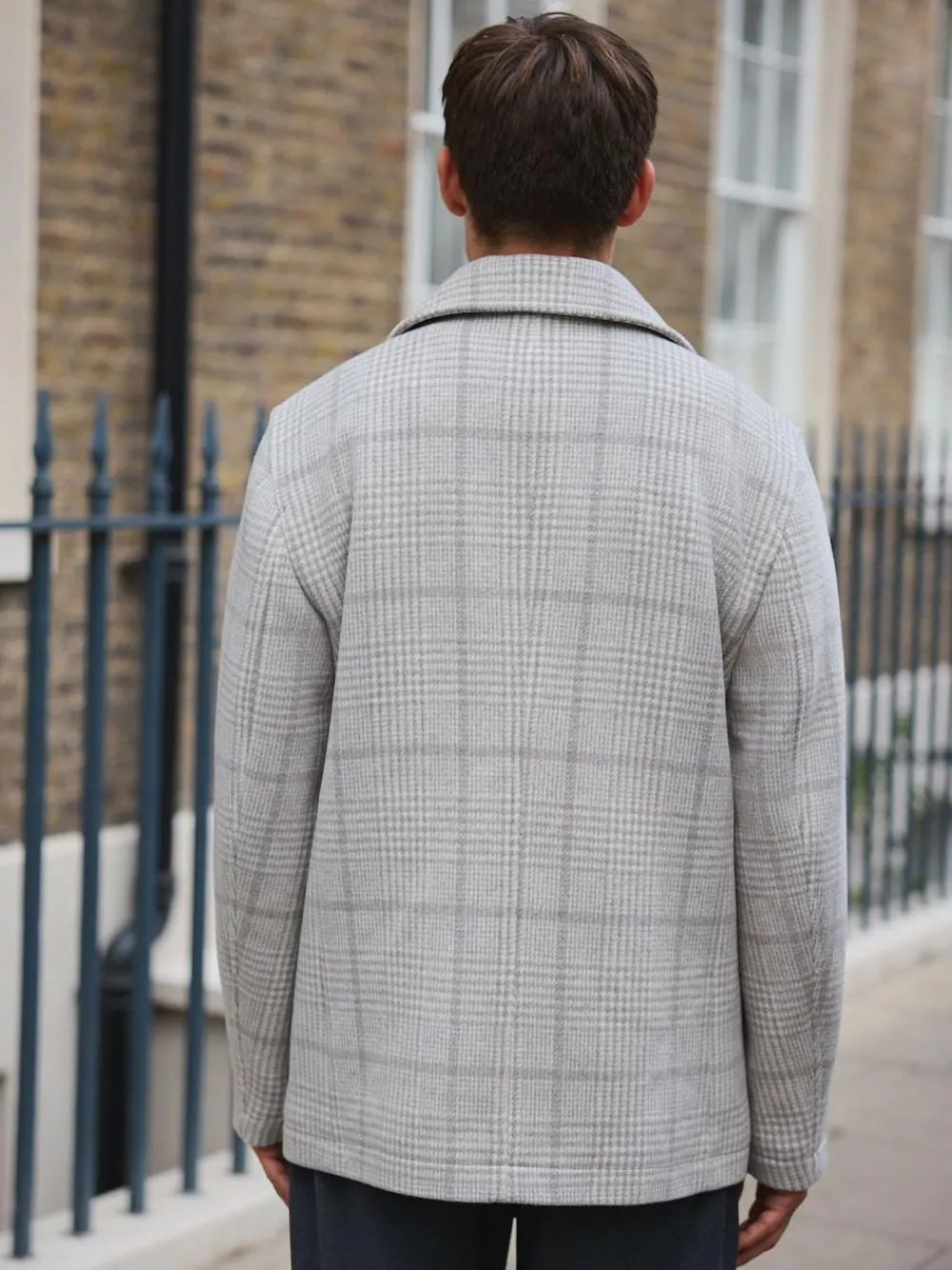 Next Grey Wool Blend Soft Touch Check Pea Coat^ Coats & Jackets|Coats & Jackets