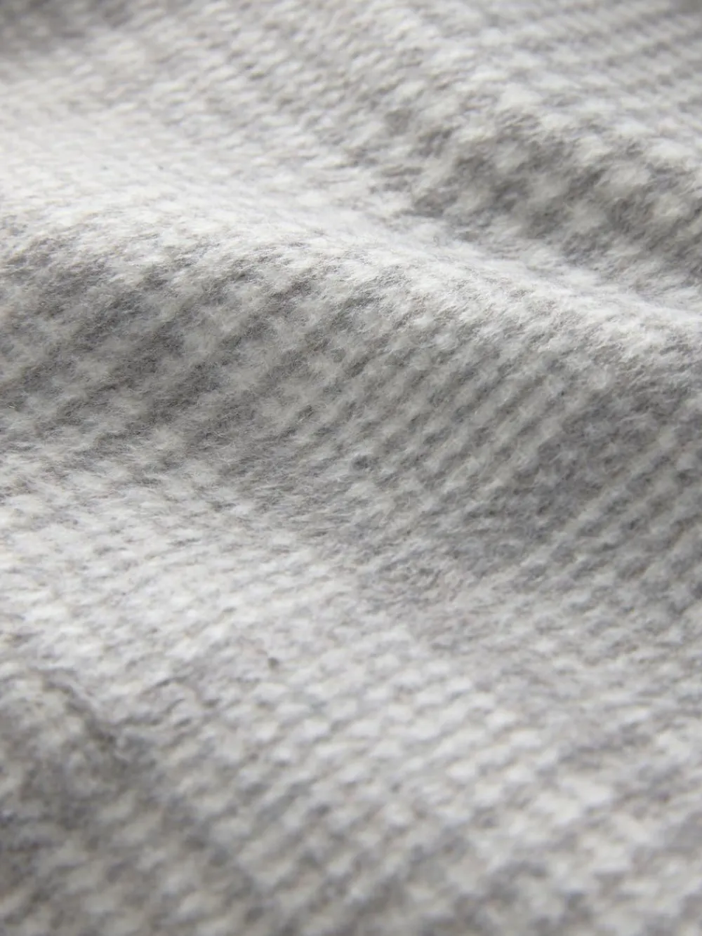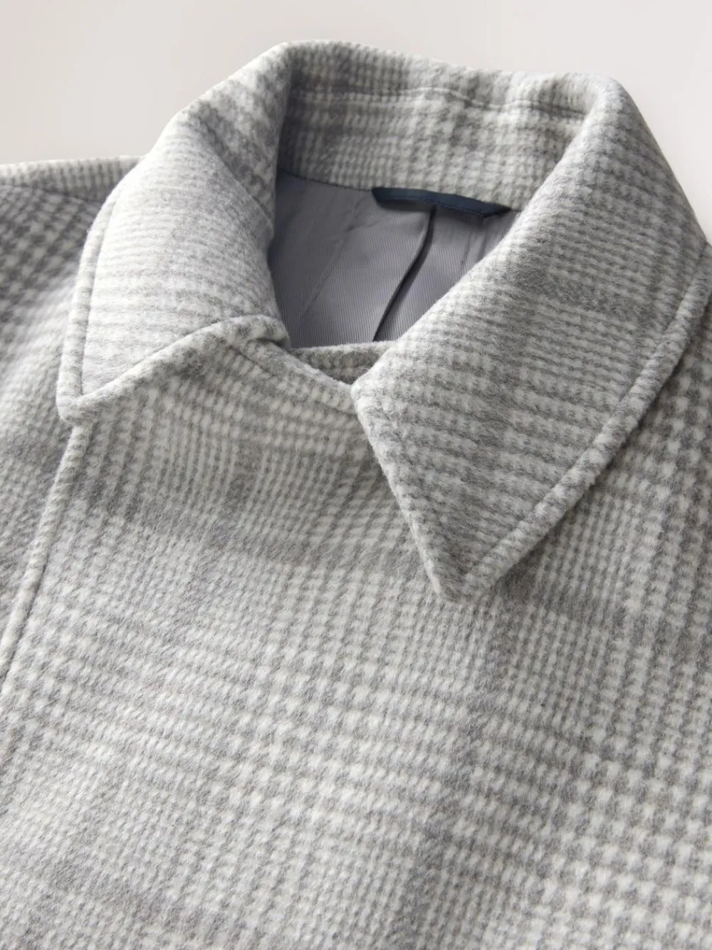 Make a sophisticated statement in this grey check pea coat. The soft wool-blend fabric and classic check design provide both warmth and a smart, timeless feel. With a double-breasted fit, wide lapels, and practical internal pockets, this jacket is the perfect polished layering piece for cooler weather. Grey Wool blend fabric Soft touch finish Check design Internal pockets Double-breasted Wide lapels Pea coat style Main 58% Polyester, 32% Wool, 5% Acrylic, 5% Other fibres. Lining 100% Recycled polyester. Sleeve Lining 51% Polyester, 49% Viscose.