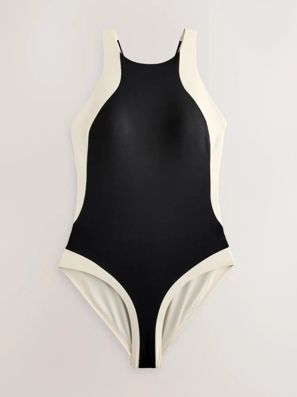 If chic and sophisticated is your go-to beach style then this Black/Ecru high neck halterneck swimsuit is for you. Designed in a timeless mix of black with cream edging, the suit features shaping mesh for tummy control and a smoother silhouette so you can feel at your best and most confident. The back of the suit also features a sleek cut-out above gold branded hardware detailing to finish. High neck Tummy control SPF 50+ Main 85% Nylon, 15% LYCRA® XTRA LIFE™ elastane. Panel 85% Recycled polyester, 15% LYCRA® XTRA LIFE™ elastane. Lining 92% Recycled polyester, 8% Elastane. Mesh 88% Nylon, 12% Elastane. Items with the curve logo are available in sizes 18 and above., LYCRA® XTRA LIFE™ fibre keeps your underwear looking new for longer, with lasting comfort and fit. This innovative stretch fabric is lightweight and breathable and will hold its shape wear after wear, wash after wash. , This fabric complies with BS EN 13758 – 1, providing protection against solar ultraviolet radiation. It has been independently tested and given a UPF rating of 50+ which blocks more than 97.5% of UV rays. Important Advice: • Sun exposure causes skin damage • Only covered areas are protected • Always use a high protection factor sunscreen on any exposed areas of skin • The protection offered by this fabric may be reduced with use or if stretched or wet • Always rinse in fresh water after each use • Fabric provides UVA +UVB protection from the sun.