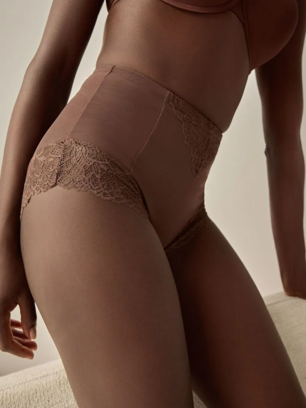 Crafted to cinch your waist and control your tummy area, our chocolate brown high waist shaping briefs are all about offering you a boosted shape in complete comfort. The high-rise design will stay put without any rolling down, while the lovely lace trim ensures no visible lines underneath your clothing. Perfect to wear under your tight-fitting outfits, these versatile shapers are a must-have addition to your lingerie collection. Machine washable. Main 81% Nylon, 19% Elastane. Gusset 100% Cotton. Items with the curve logo are available in sizes 18 and above.