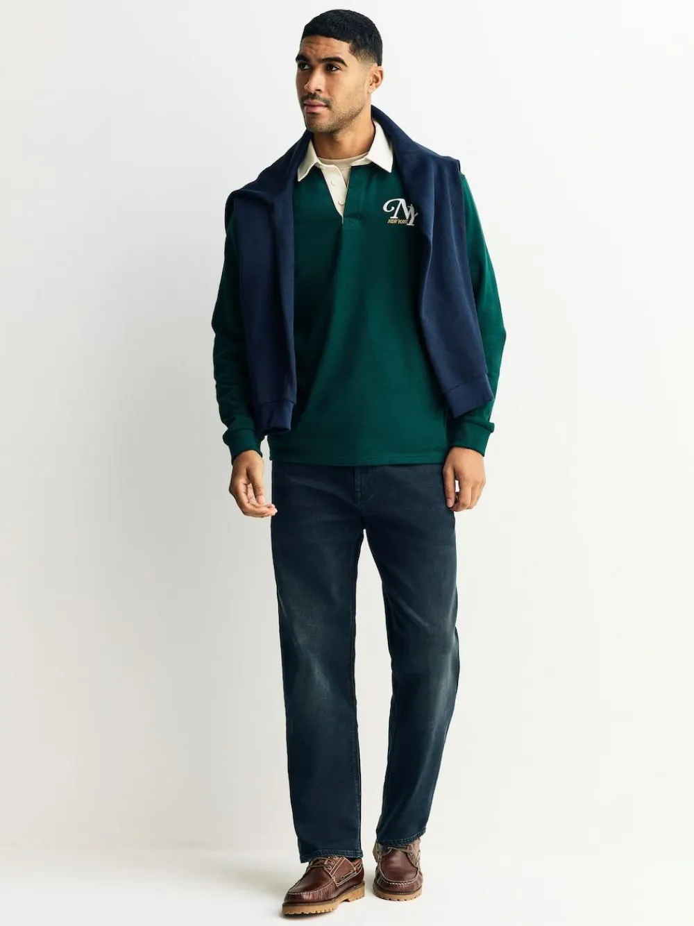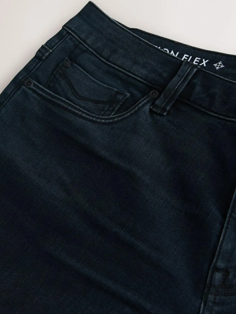 The Motionflex jeans range is made in high-tech ink blue performance denim. These ink-coloured jeans have been configured to ensure comfort, shape retention and unrestrictive movement wear after wear. The beauty of Motionflex is all in the super, ultra stretch fabrication which makes them both durable and comfortable for all-day, everyday wear. Choose from a variety of fits, leg lengths and washes to find the perfect pair. Straight fit Motionflex jeans Zip Fly Stretch for comfort Machine washable. 67% Cotton, 26% Recycled polyester, 3% Viscose, 2% Elastane, 2% Polyester.