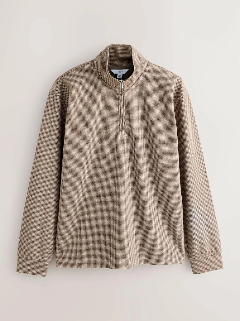 Next Long Sleeve Quarter Zip Jumper Neutral Brown Dogtooth