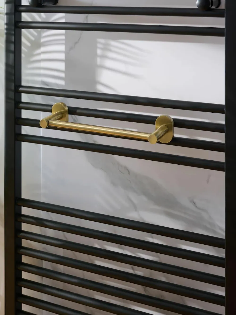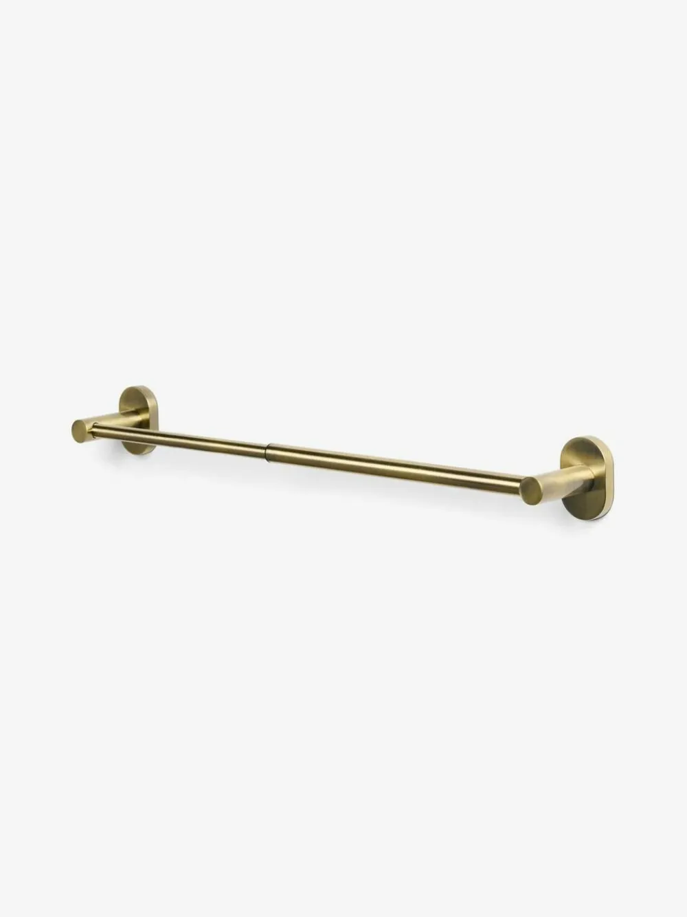 Part of our Oslo fittings range, this extendable towel rail features magnetic fixings to attach to any magnetic surface – perfect for adding towel storage to radiators and fridges. The extendable pole allows you to adjust to suit your required length. Height 6cm Width 30cm Depth 8cm 58% Zinc Alloy, 40% Stainless steel, 2% Plastic. This item has been tested to ensure it is bathroom suitable and protects against corrosion and distortion from steam.