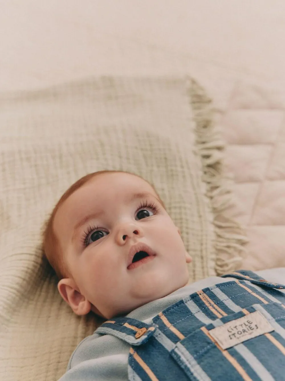 Machine washable. Dungaree Main 100% Cotton. Lining 100% Cotton. Bodysuit 82% Cotton, 18% Recycled polyester. Warning: Keep away from fire and flames.