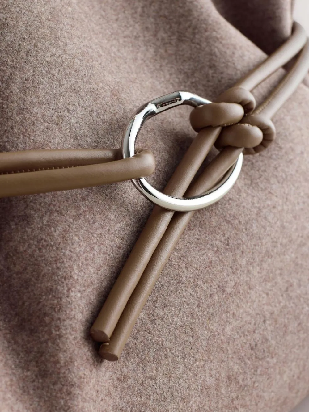 Complete your look with this unique mink brown felt shoulder bag. The soft felt fabric and slouchy shape create a relaxed, on-trend accessory, while the stylish belted detail with gold-toned hardware adds a touch of sophistication. With a secure magnetic clasp opening and two top handles, it’s a versatile choice for your daily essentialsFelt fabric Belted detail Magnetic clasp opening Two top handles Internal pocket Height 39cm Width 48cm Depth 14cm Outer 100% Polyester. Lining 100% Recycled polyester. Trim 100% PU.